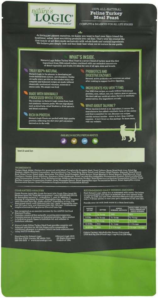 Nature's Logic Turkey Dry Cat Food (1 Pack), 7.7 lb