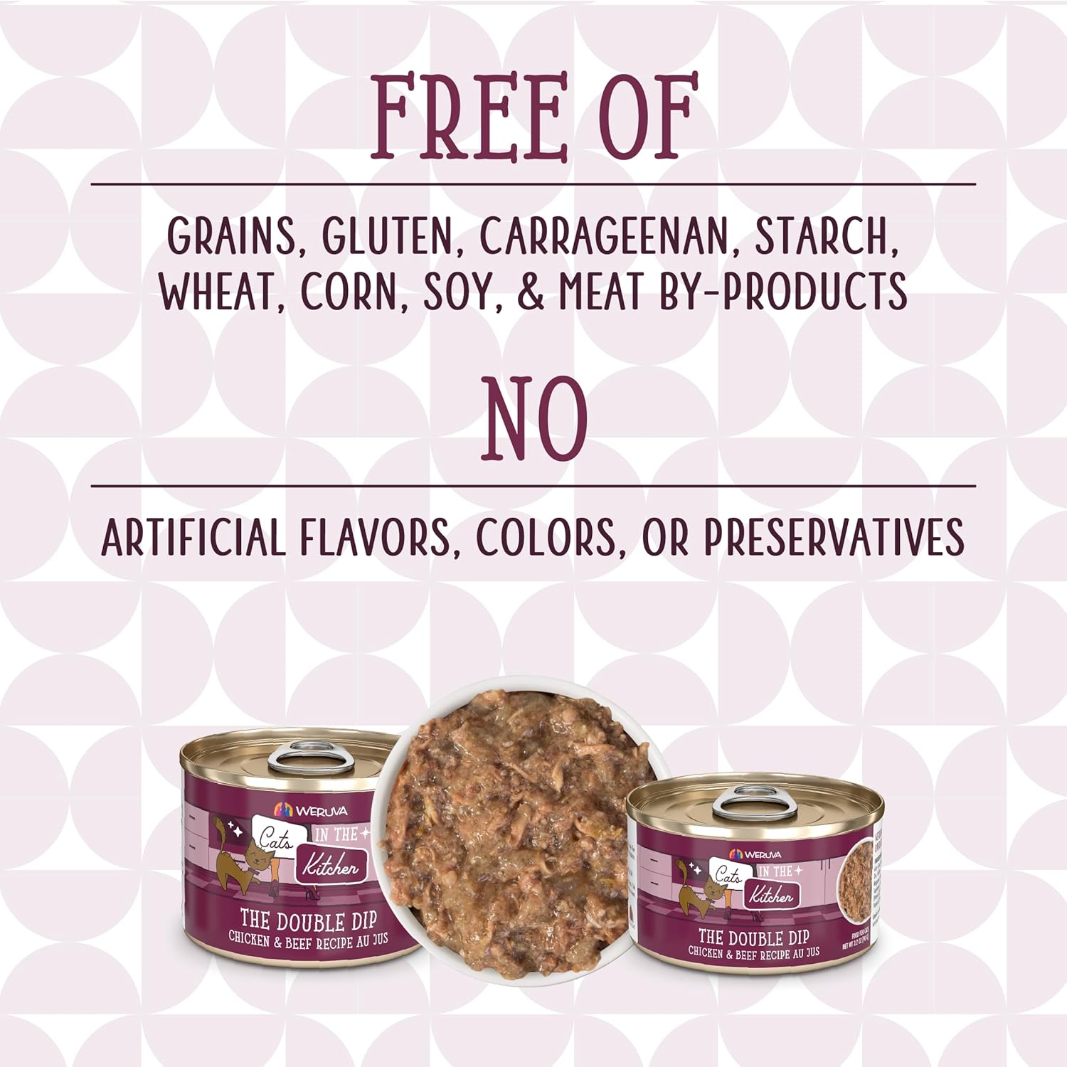 Weruva Cats in The Kitchen, The Double Dip with Chicken & Beef Au Jus Cat Food, 6oz Can (Pack of 24)