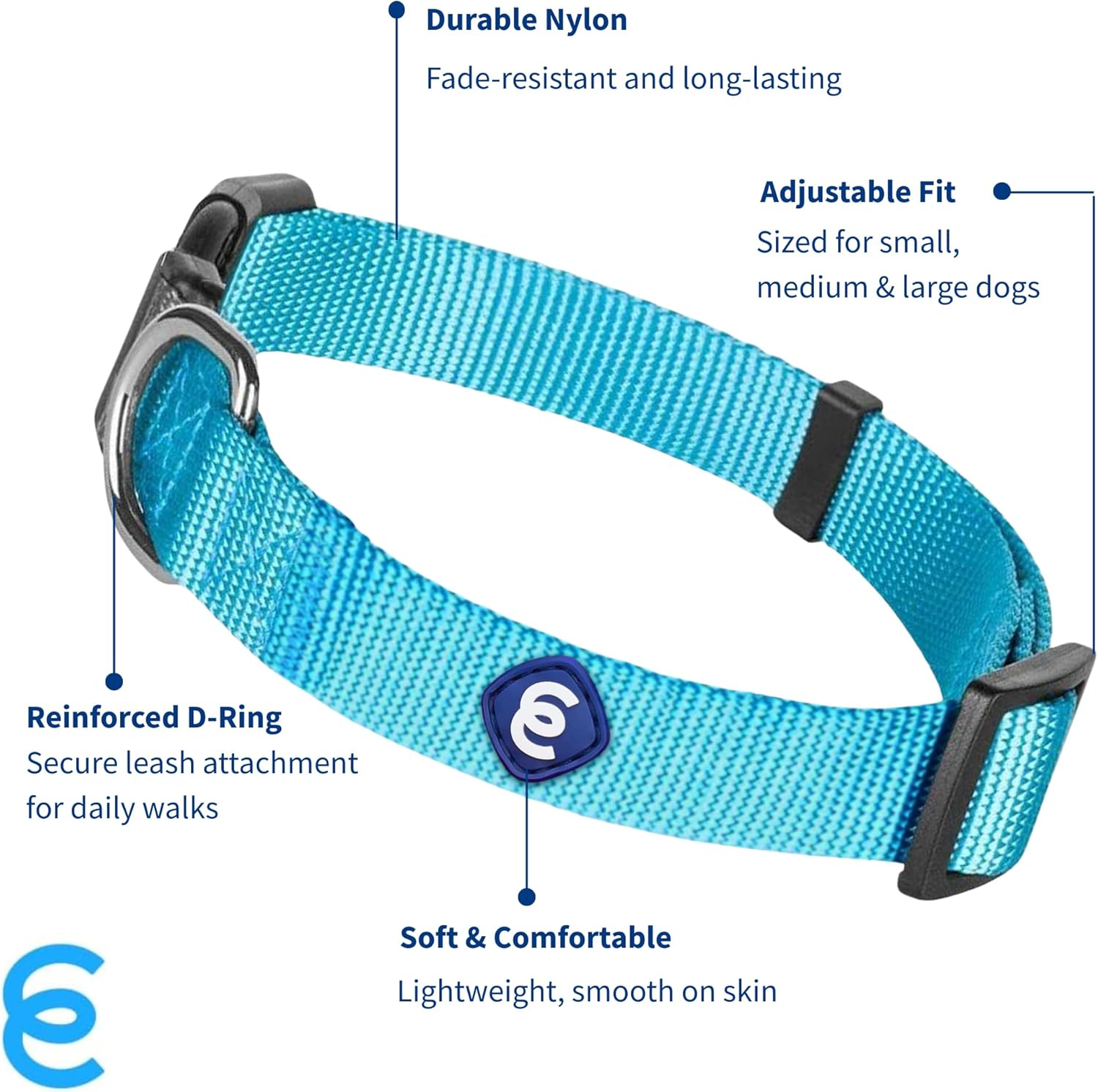 Blueberry Pet Essentials Large Dog Collar in Turquoise | Adjustable & Eco-Friendly Durable Nylon Strap | Classic Collar for Large Dogs, Boy & Girl Pets