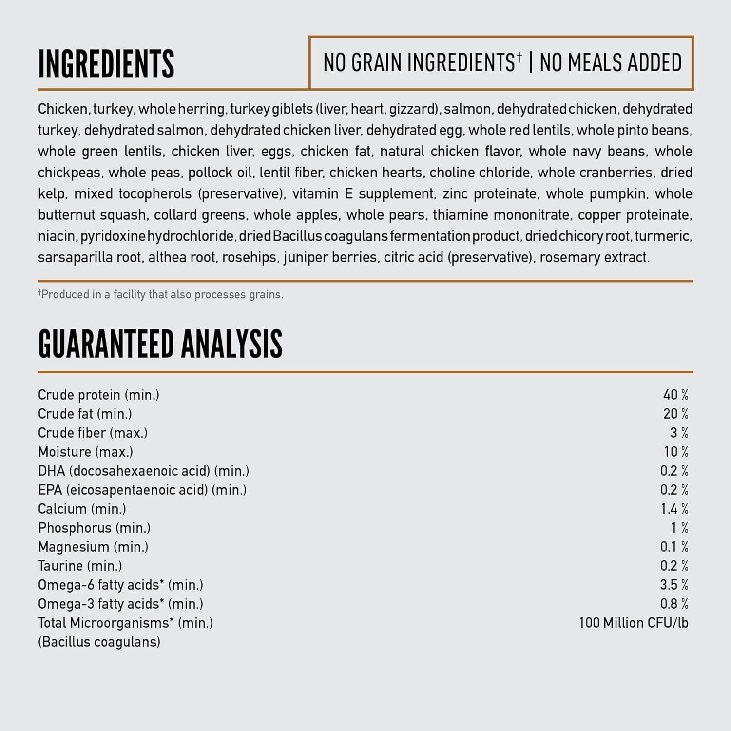 - First five ingredients of this ORIJEN cat food are fresh or raw** free-run*** chicken and turkey, whole mackerel, turkey giblets and flounder, providing a strong source of essential protein, vitamins, and minerals