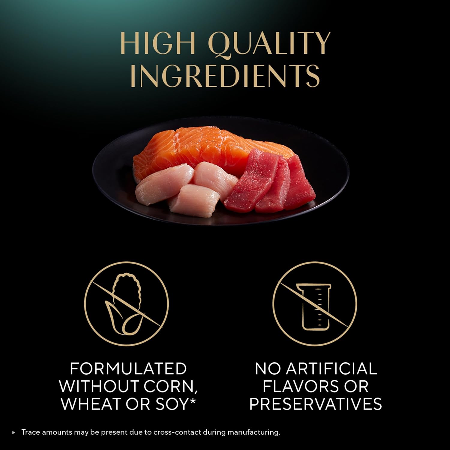 - Delicious Recipe: Sheba Perfect Portions Wet Cat Food Cuts in Gravy is formulated without grains, corn, or soy and contains no artificial flavors or preservatives; although trace amounts may be present due to cross-contact during manufacturing