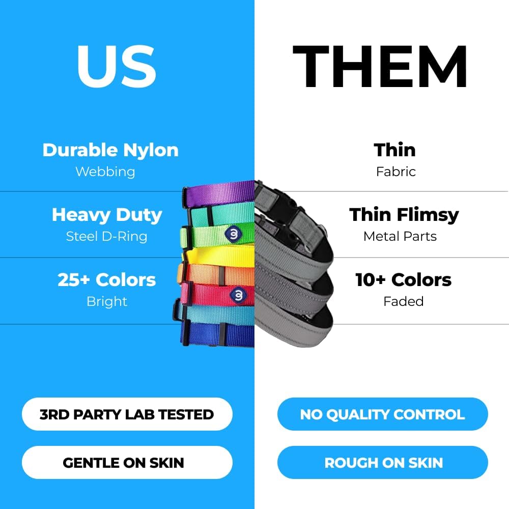 - Adjustable Fit: Our dog collars offer a perfect adjustable fit for medium-sized dogs. This puppy collar is designed to ensure comfort and security, accommodating neck sizes from 14.5" to 20" without stretching.