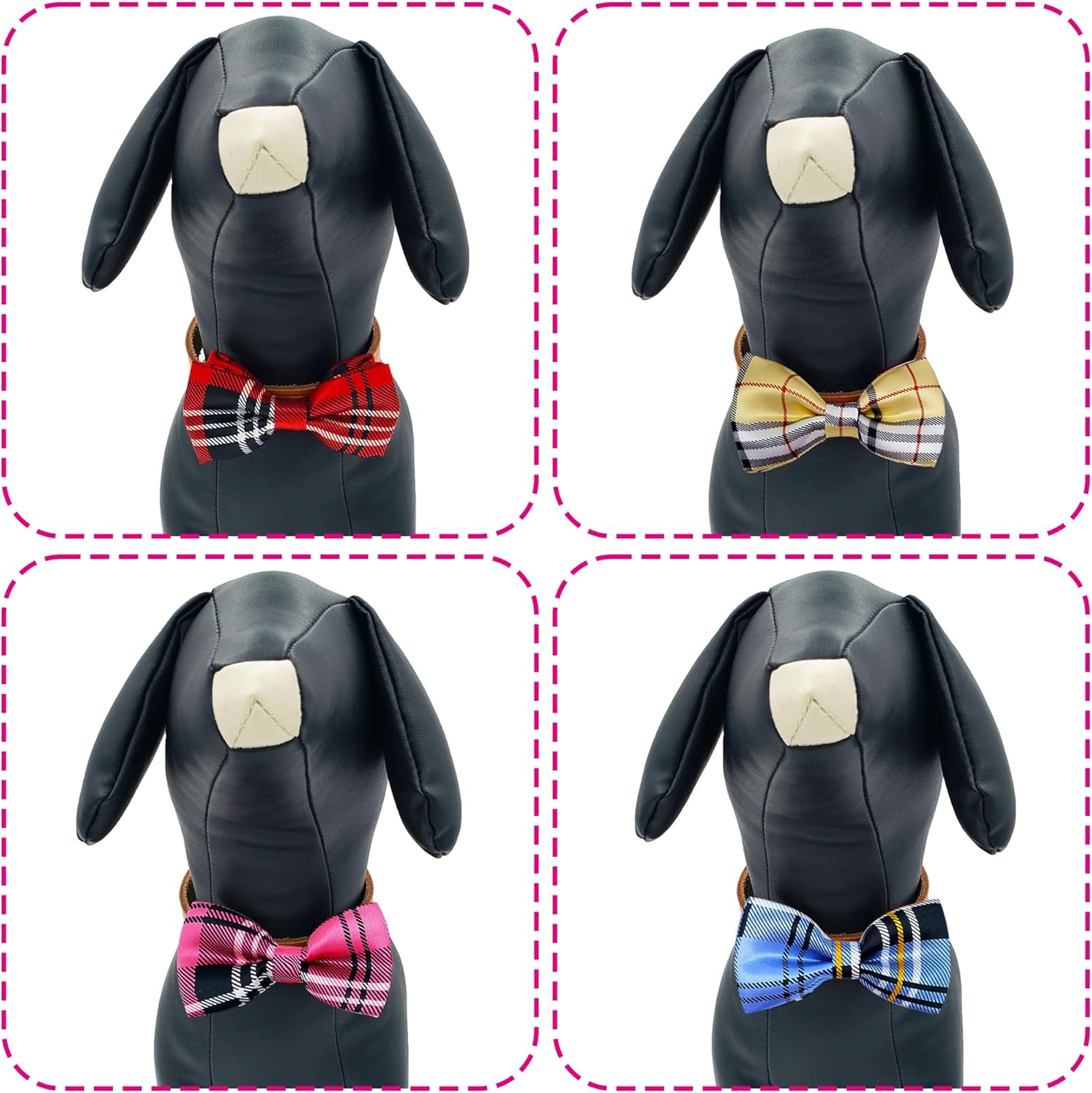 PET SHOW 8pcs Plaid Small Dogs Collar Bow Ties Puppies Cats Collar Charms Accessories Slides Attachment Bowties for Birthday Wedding Parties Assorted
