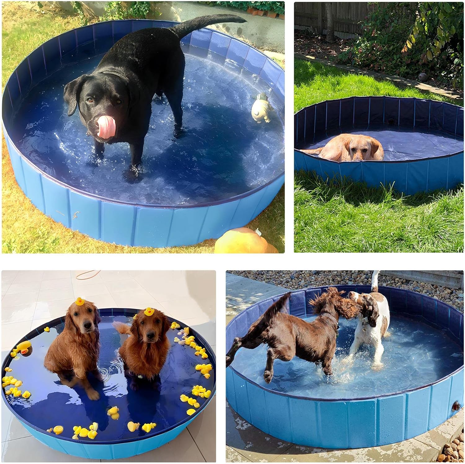 - Easy to Use: The simple structure makes this foldable pool simple to use. You can set it up quickly and easily without inflating it. Durable PP boards and PVC covering make this pet pool easy to open and fold
