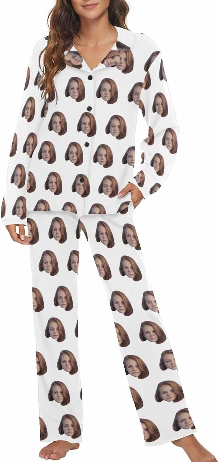 MyPupSocks Custom Face Pajamas for Women Set, Personalized Photo Long Sleepwear XS-XXL