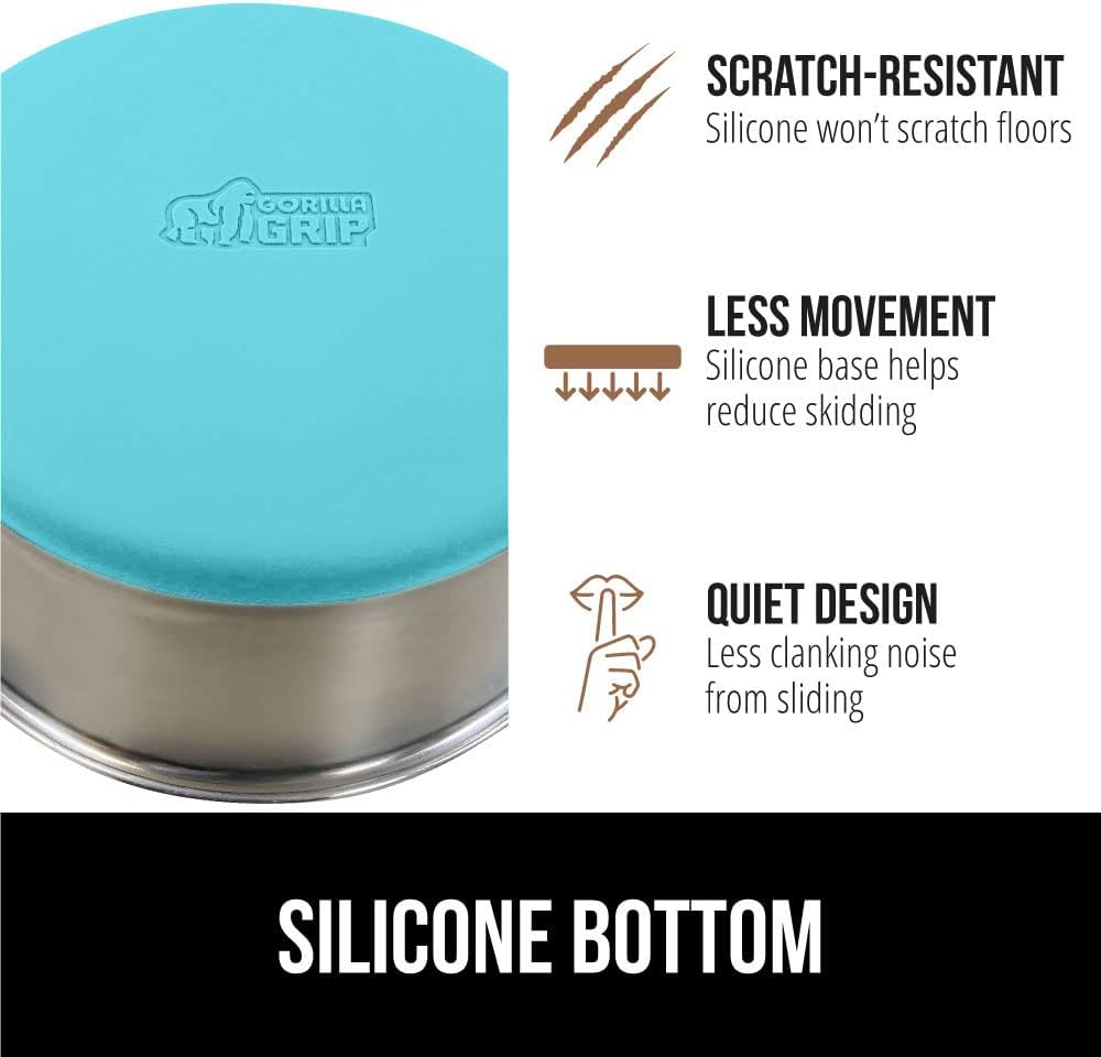 - SILICONE BOTTOM: the Gorilla Grip bowl is constructed from durable silicone that helps keep the bowl steady and wonβt scratch your floors; while some over eager eaters may still be able to slide the bowls, the silicone will help prevent much movement; plus, it reduces the noise from clanking and sliding across wood, tile, and more