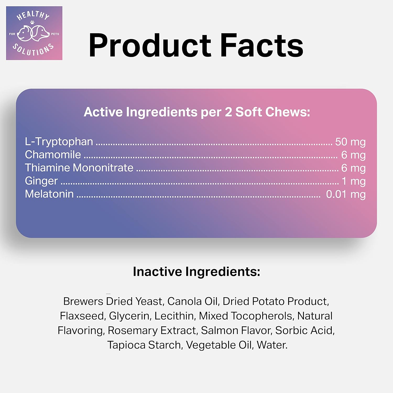 - šø VETERINARIAN FORMULATED -- with Melatonin, Chamomile, Passion Flower, Thiamine, L-Tryptophan, and Ginger to help soothe sensitive stomaches.