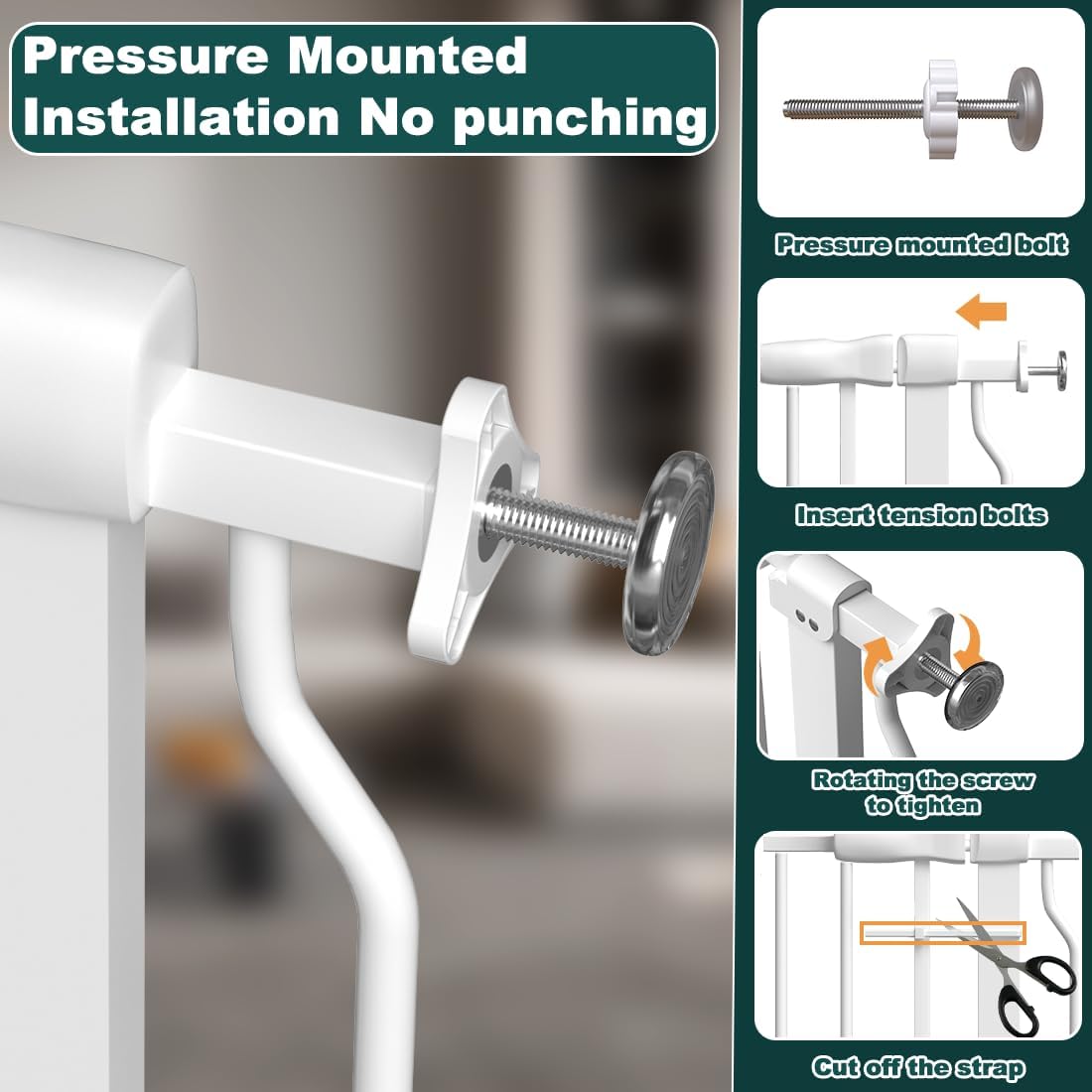 - 【GREAT FOR MOST OPENINGS】Our white gate is suitable for different doors! Choose for openings between 25"-76.37".We have different baby gates sizes,it doesn't include all extensions,the extension which you received denpends on your door opening.Whether your dooway is wide or narrow ,you can find the suitable baby gate or pet gate.And our large walk thru gate makes it easier to walk when holding the baby.