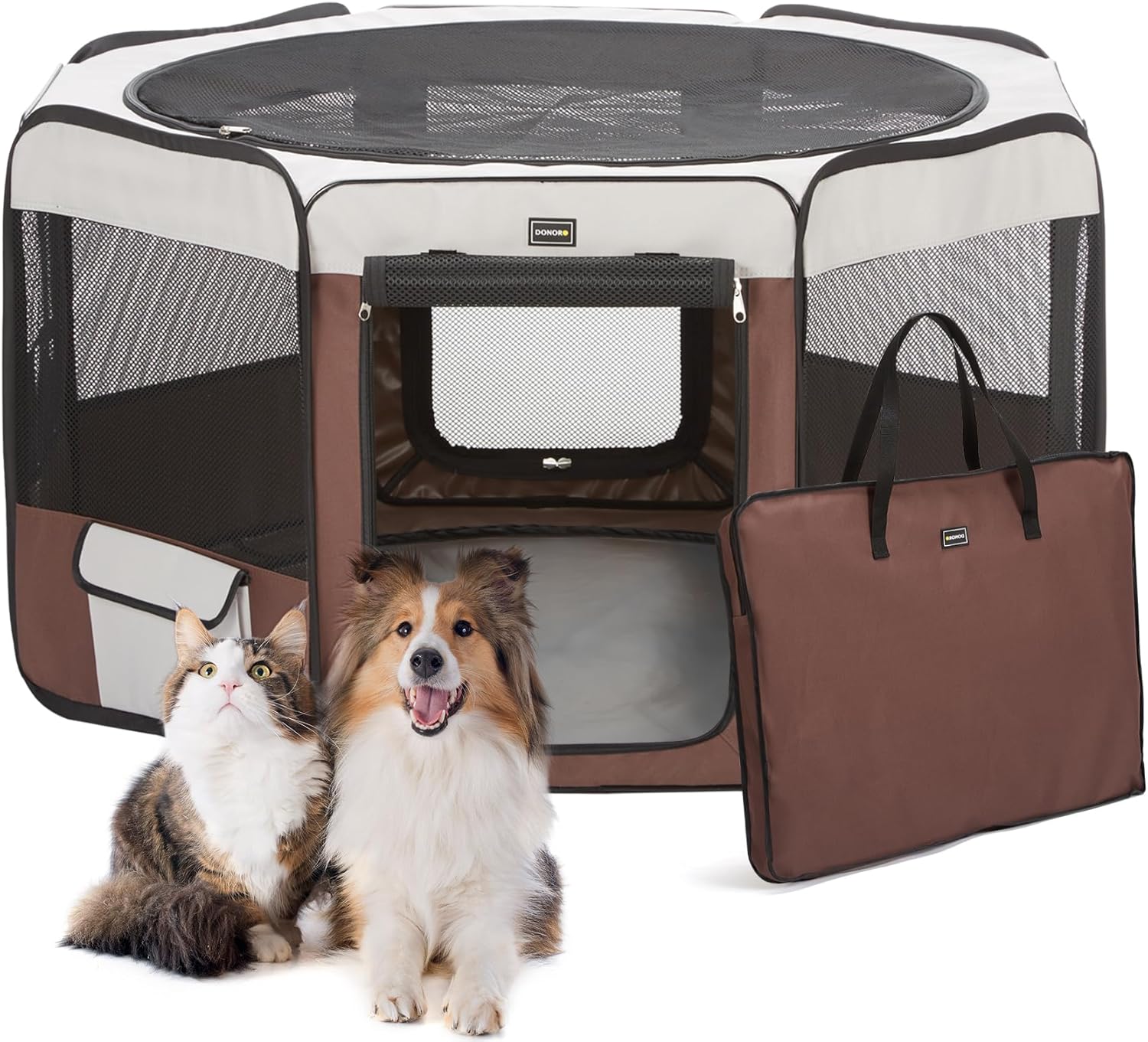 DONORO Dog Playpen 55" Portable Pet Play Pens for Medium Large Dogs, Foldable Exercise Kennel Tent Crate Indoor/Outdoor Travel Camping, Removable Top/Bottom (55"x55"x30"), 8