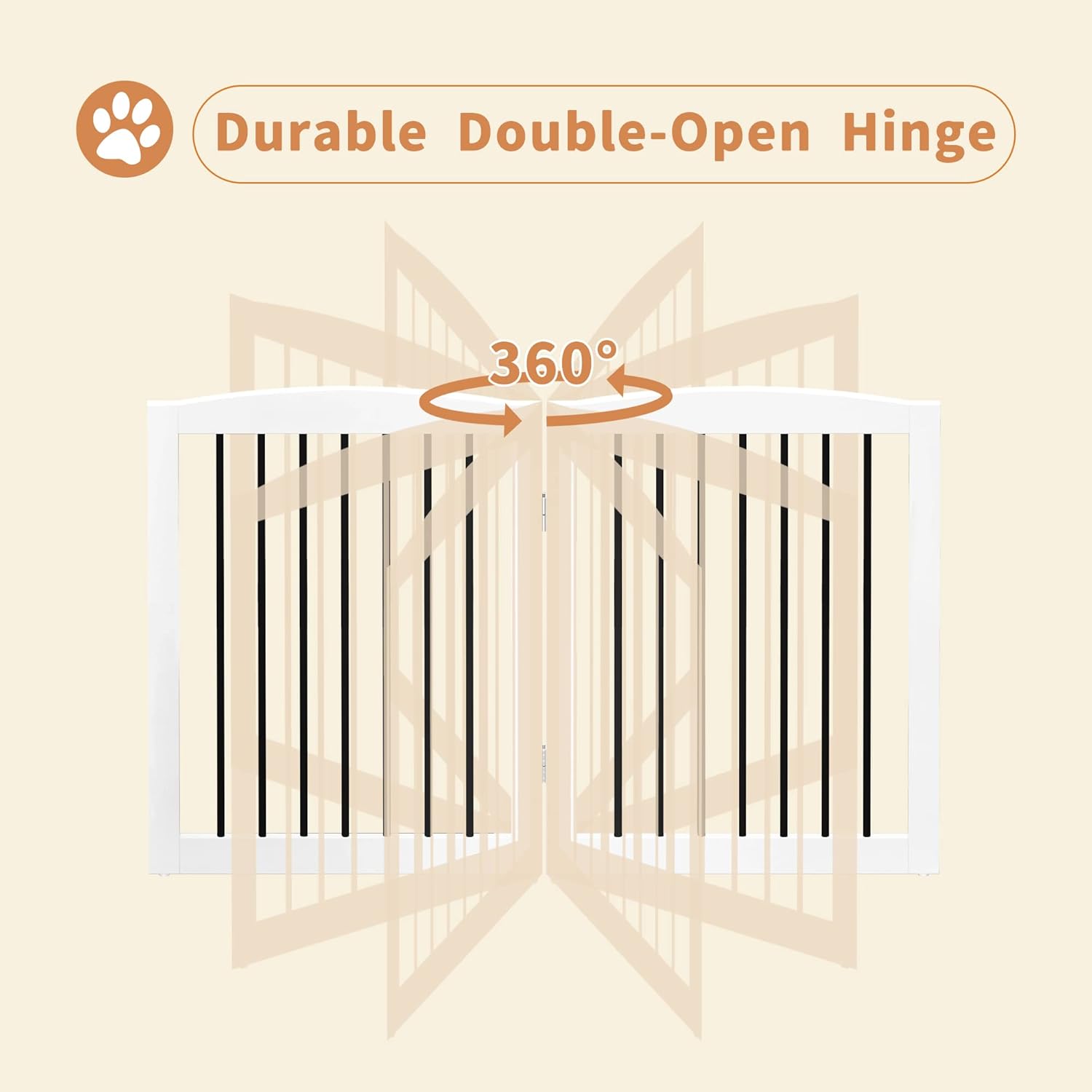 - 【FLEXIBLE FOLDING & STABILITY】: With flexible 360° hinges, this free standing pet gate can be fold in different shapes and barricade your pets in doorways, entryways, halls, bedrooms, stairs, kitchens, balconies. It is sturdy enough with exclusive support feet.