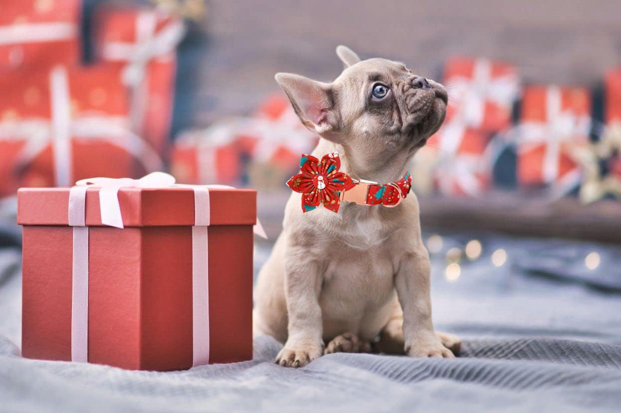Lionet Paws Christmas Dog Collar with Flower, Dog Flower Collar with Metal Buckle for Dogs, Adjustable Comfortable Dog Collar Girl Gift, L, Neck 16-24 in