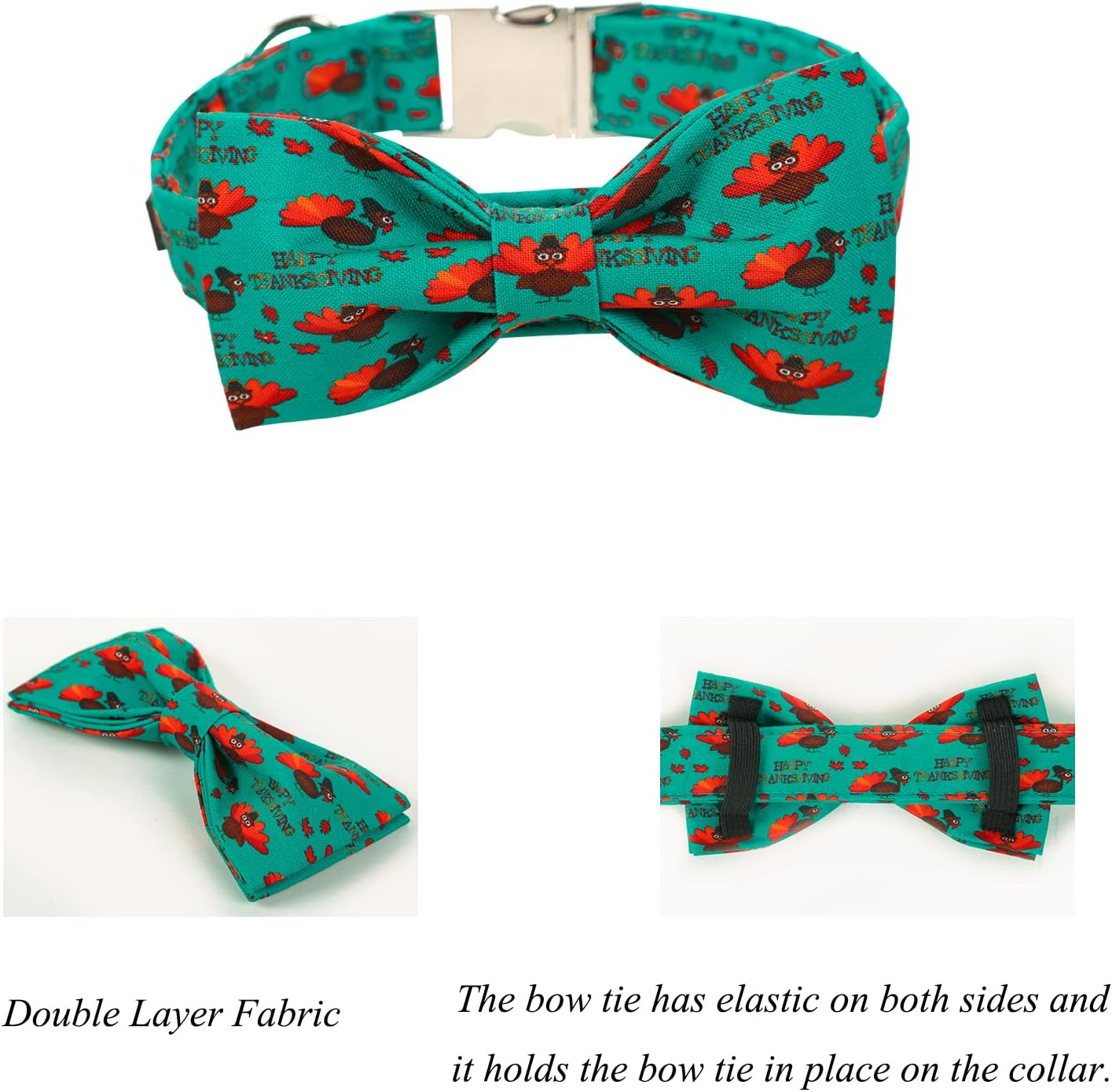 Lionet Paws Thanksgiving Day Dog Collar with Bowtie, Dog Bowtie Collar with Metal Buckle for Dogs and Cats, Adjustable Comfortable Turkey Dog Collar Girl Boy Gift,XXS, Neck 7-11 in