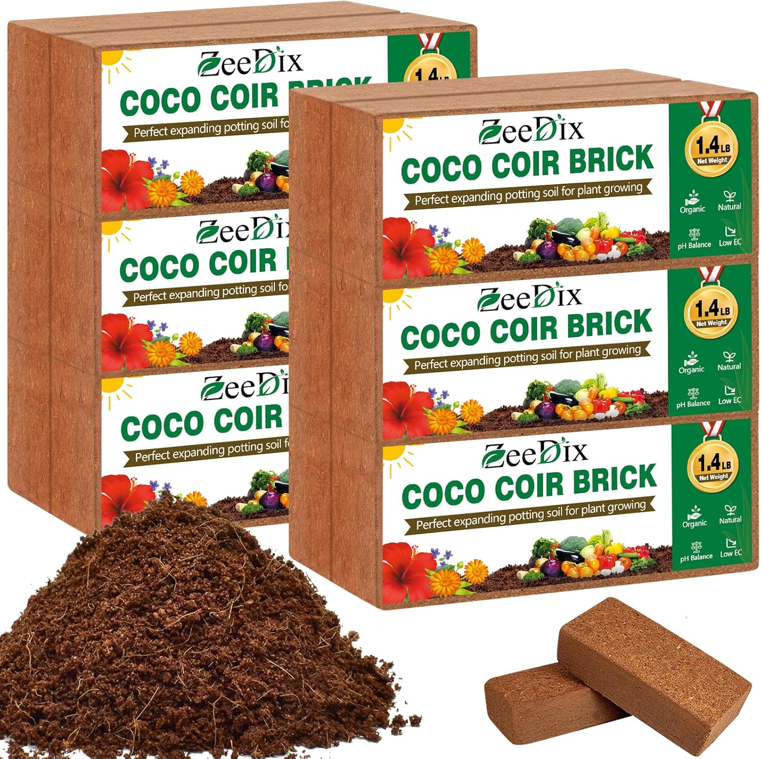 - πππππππ πΎππΎππππ πΎπππ π½πππΎππ (12-ππΌπΎπ): Each 8"x4"x2" brick (1.4lbs), expands to 2.1 gallons of coconut soil, crafted from 100% natural coconut husk fibers, featuring low EC levels and pH-balanced composition. This biodegradable growing medium enhances plant growth while supporting low-impact gardening, ideal for raised bed soil, indoor plant soil, outdoor potting soil, seed starter soil and more