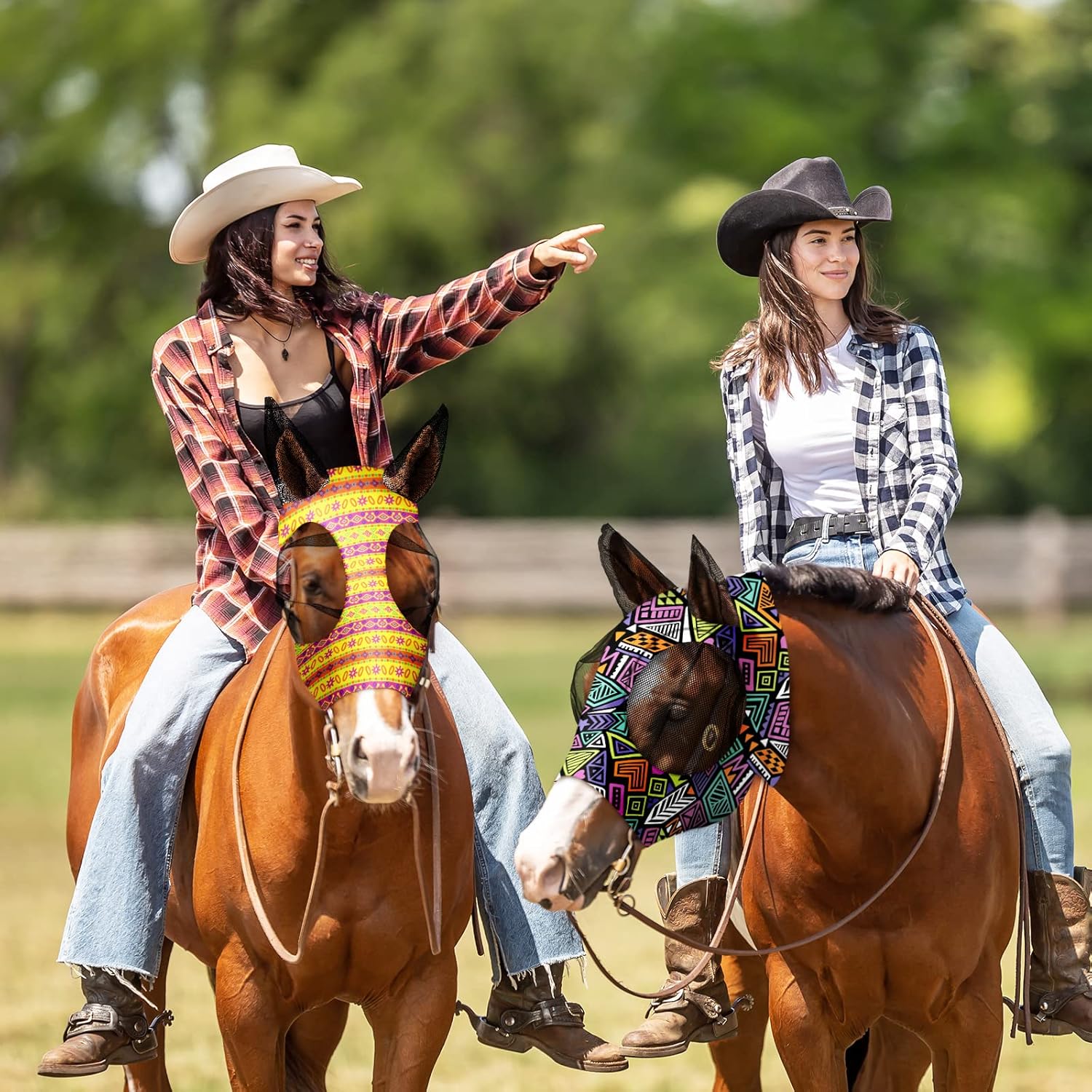Chunful 6 Pcs Horse Fly Masks with Ears Smooth and Comfortable Cashel Mesh Fly Mask Elasticity Breathability UV Protection Horse Face Covering for Riding Supplies(Geometric,Large)