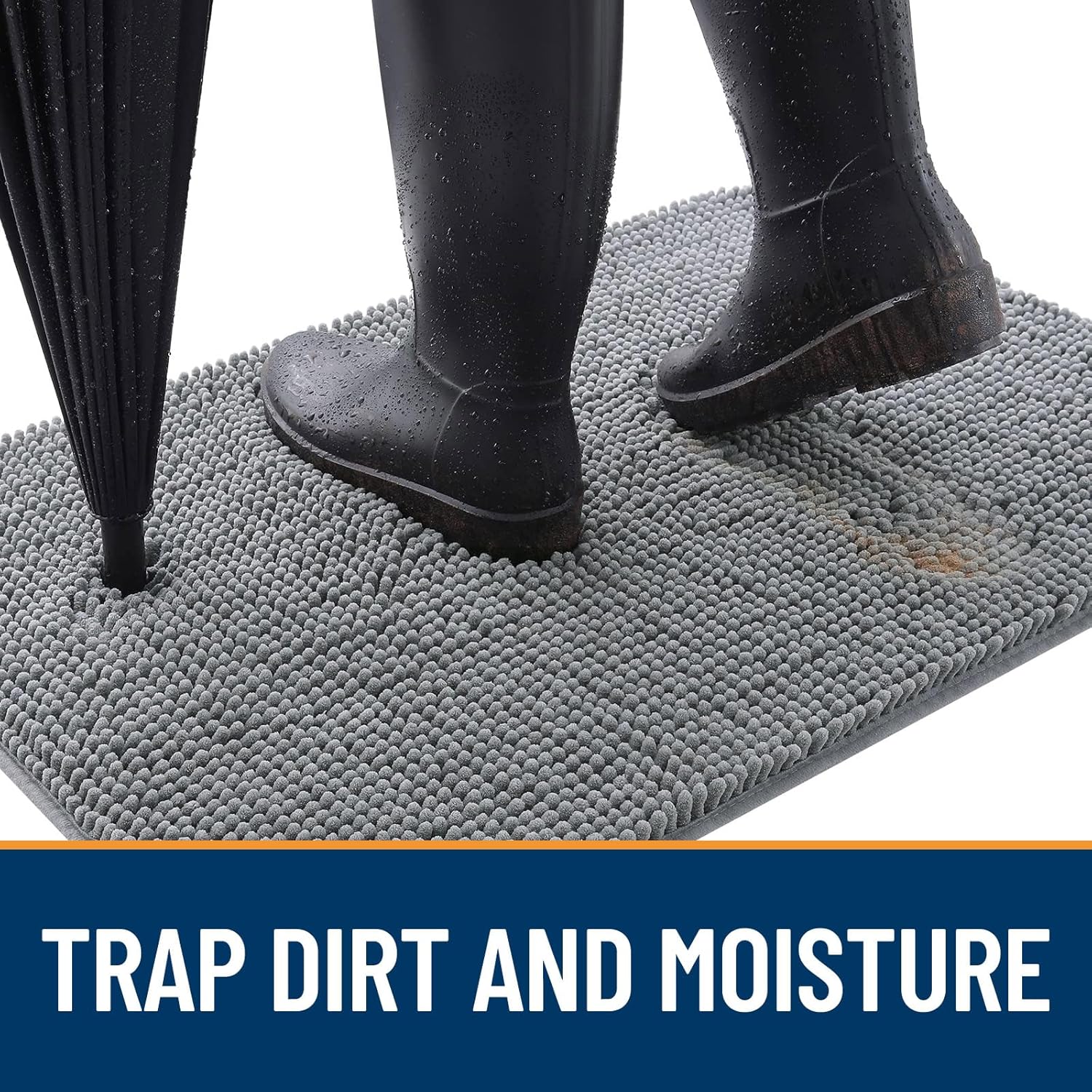 OLANLY Dog Door Mat for Muddy Paws 48x30, Absorbs Moisture and Dirt, Absorbent Non-Slip Washable Doormat, Quick Dry Chenille Mud Mat for Dogs, Entry Indoor Entryway Carpet for Inside Floor, Grey
