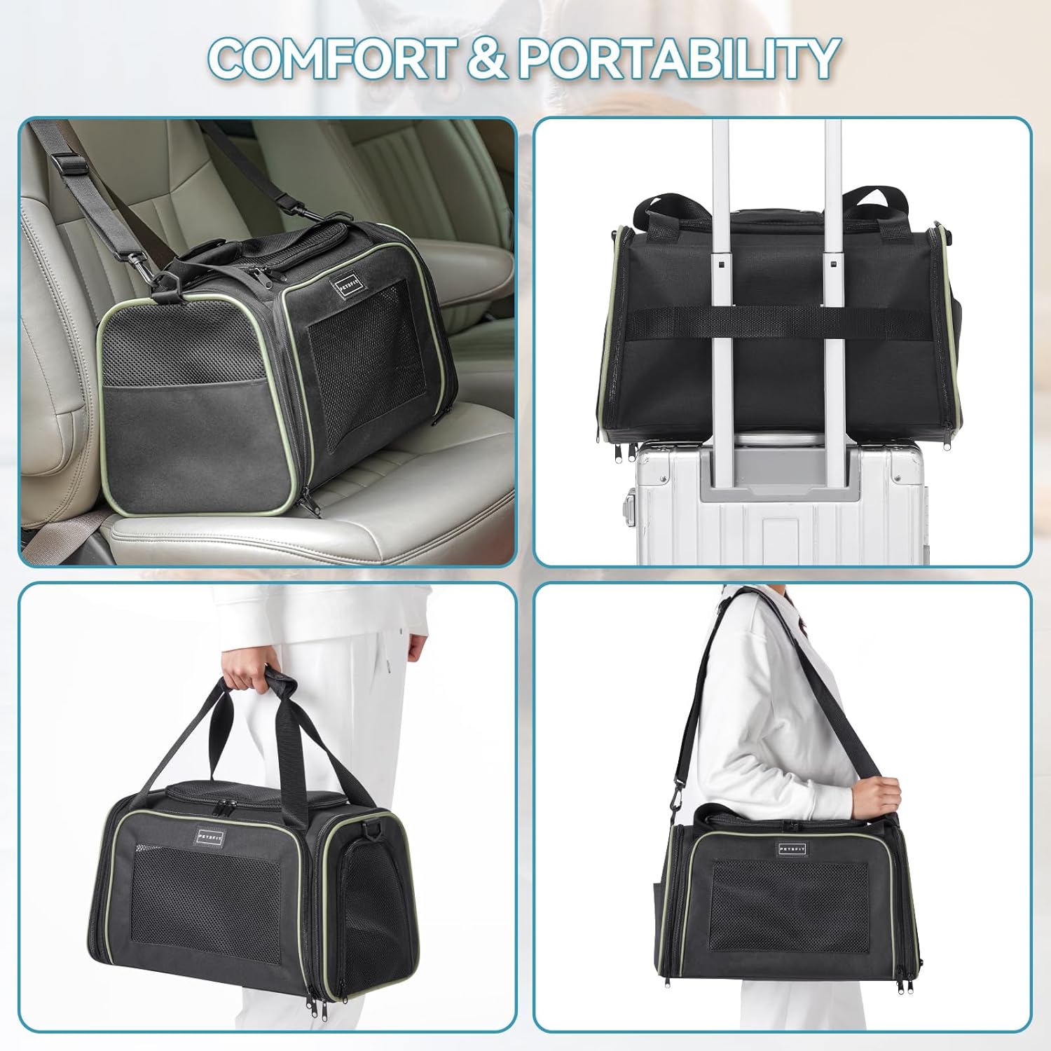 - [Cat Carrier Airline Approved] With an airline-approved design, Conforms to the under-seat dimensions of most airlines, you can take your pet to go to everywhere. The dog carrier comes with an extendable cozy fleece pet mat, which offers extra sleeping space for your traveling pet.