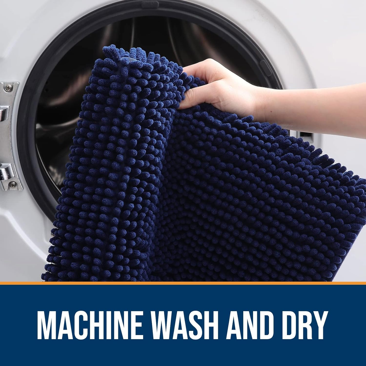 OLANLY Dog Door Mat for Muddy Paws 47x24, Absorbs Moisture and Dirt, Absorbent Non-Slip Washable Doormat, Quick Dry Chenille Mud Mat for Dogs, Entry Indoor Entryway Carpet for Inside Floor, Navy Blue