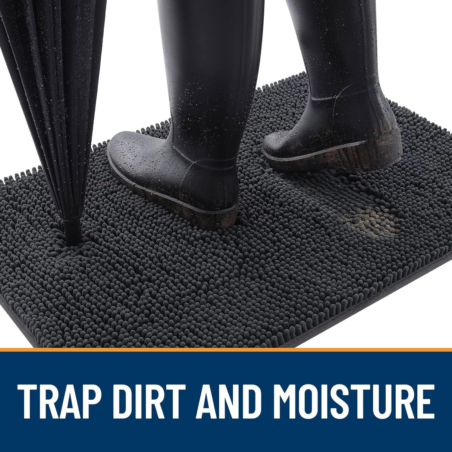 - [ABSORBS MOISTURE AND DIRT] OLANLY indoor dog mat for muddy paws is crafted to efficiently remove dirt and swiftly absorb moisture. With our doormat, your shoes will be instantly clear of any water, dust, grit, muck, sand, sleet, grass, slush, rain, or snow upon entering the house. It's an excellent choice for use as an entryway door mat, a welcoming door mat, or a dirt-trapping mat.