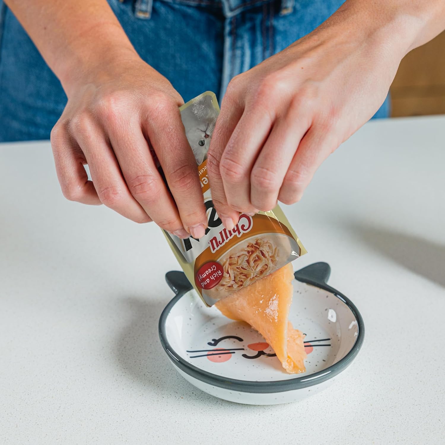 - RICH & CREAMY: Churu Stew is a rich and creamy purée like our original Churu lickable cat treats, but with a thicker consistency that is perfect to serve as a side dish, plus we've added shreds of farm-raised chicken for added texture