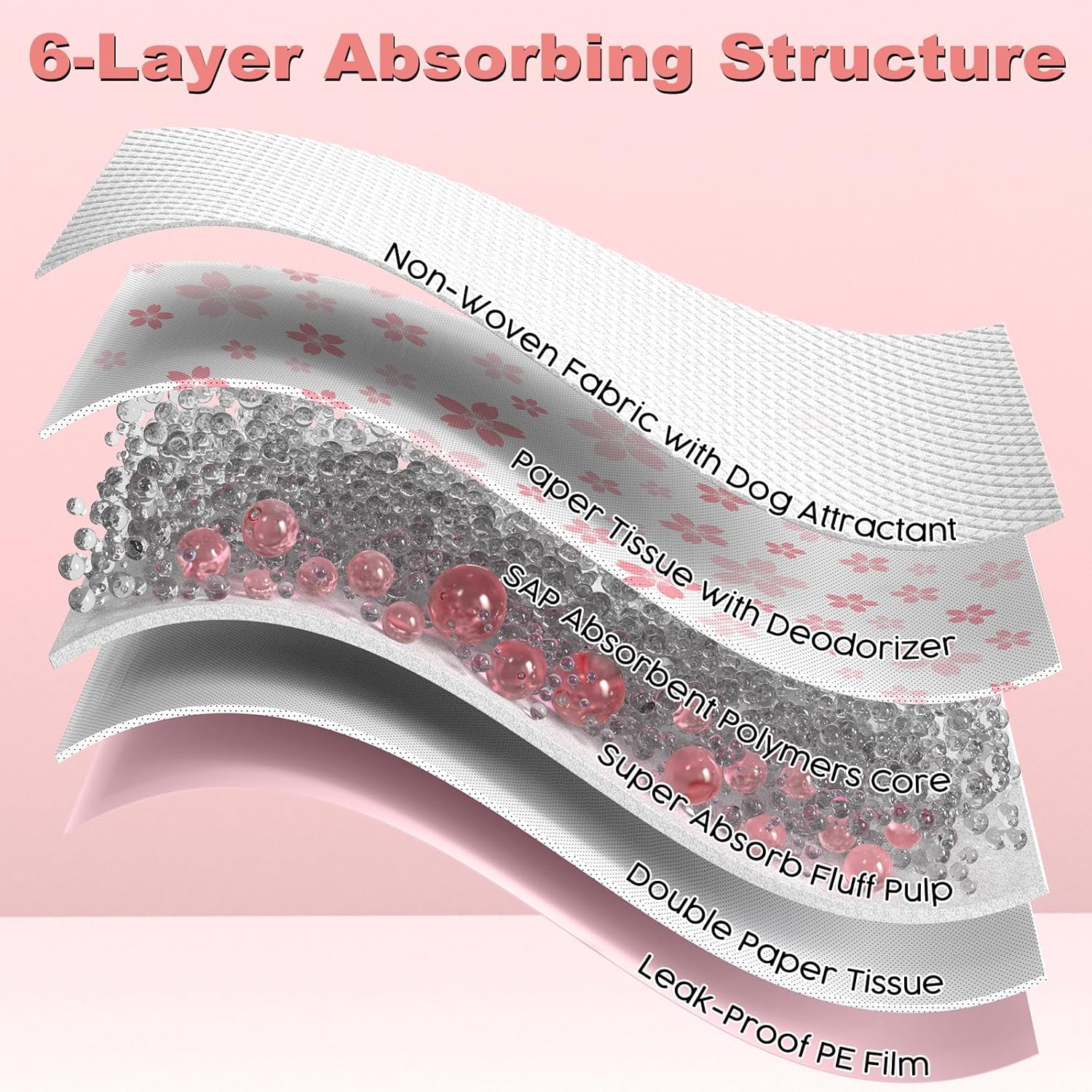 MIZOK Puppy Pads 22"x 22" with Leak-Proof Quick-Dry Design Pee Pads for Dogs Potty Training, 6-Layer Standard Absorbency Dog Pee Pads Regular Size, Pink Cherry Blossom Pattern (100 Counts)