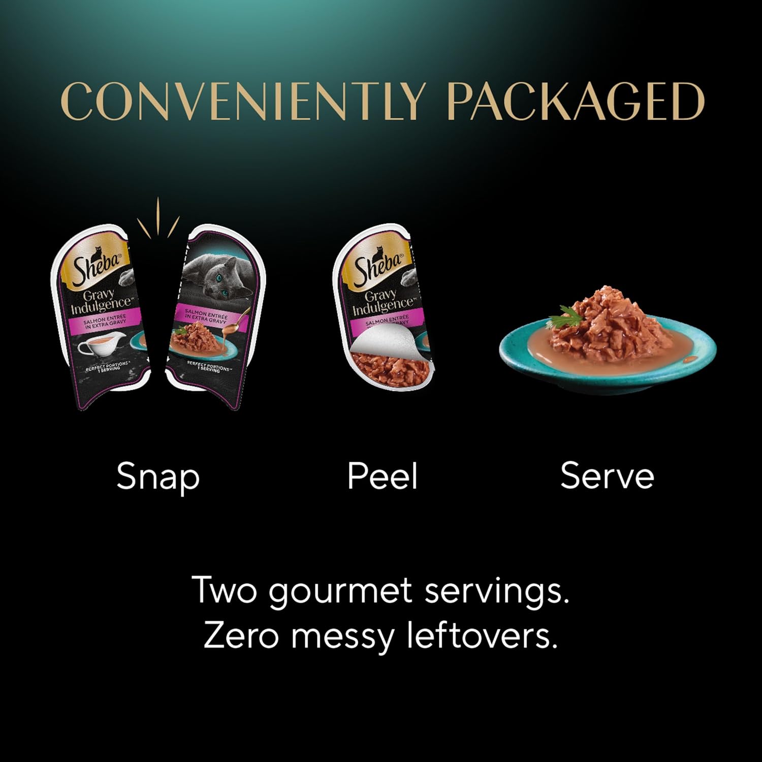 - Indulgent Recipe: Sheba Gravy Indulgence features cuts of Salmon covered in a thick, decadent gravy your feline will love and love you for