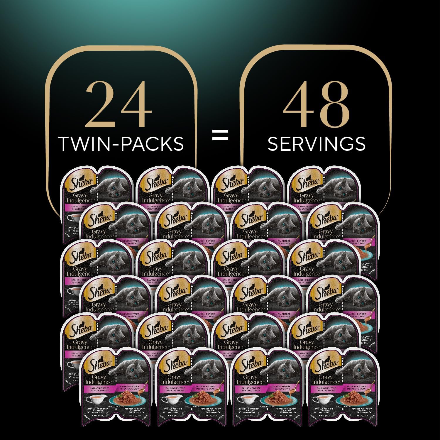 Sheba Gravy Indulgence Adult Wet Cat Food Salmon Entree in Extra Gravy, 2.6 oz. Twin-Pack Trays (24 Count, 48 Servings)