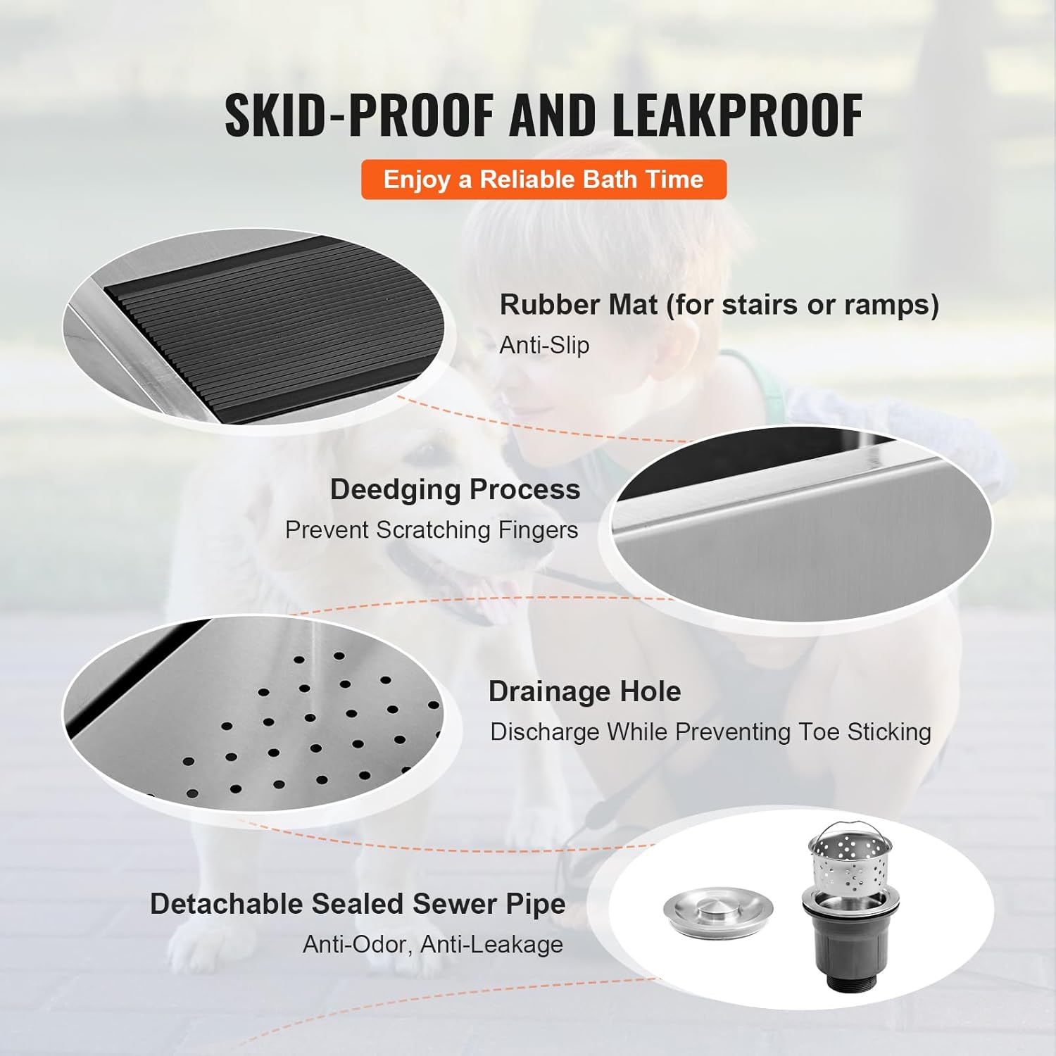 - Seamless 50" Design: Our multi-functional stainless steel pet bath tub boasts seamless welding for a leak-free experience. It's perfect for pet owners and professional groomers who want a safe and hassle-free pet care solution.