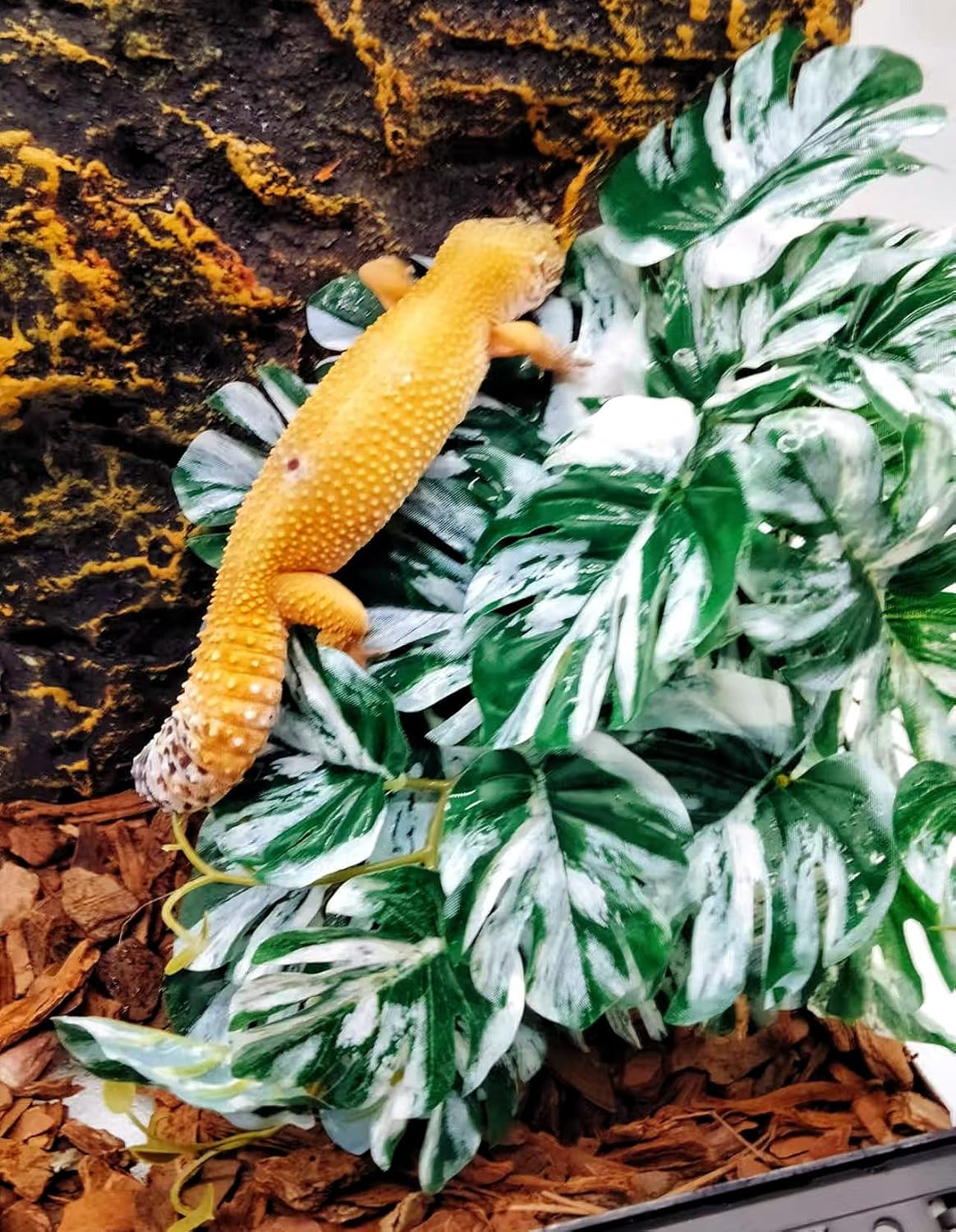 - EASY TO CLEAN AND WATERPROOF: Very easy to clean and maintain, just wipe it with a damp cloth, no need for hassle like live plants. The leaves can hold water droplets well, suitable for chameleons and some geckos and other animals that only drink dew and water droplets.