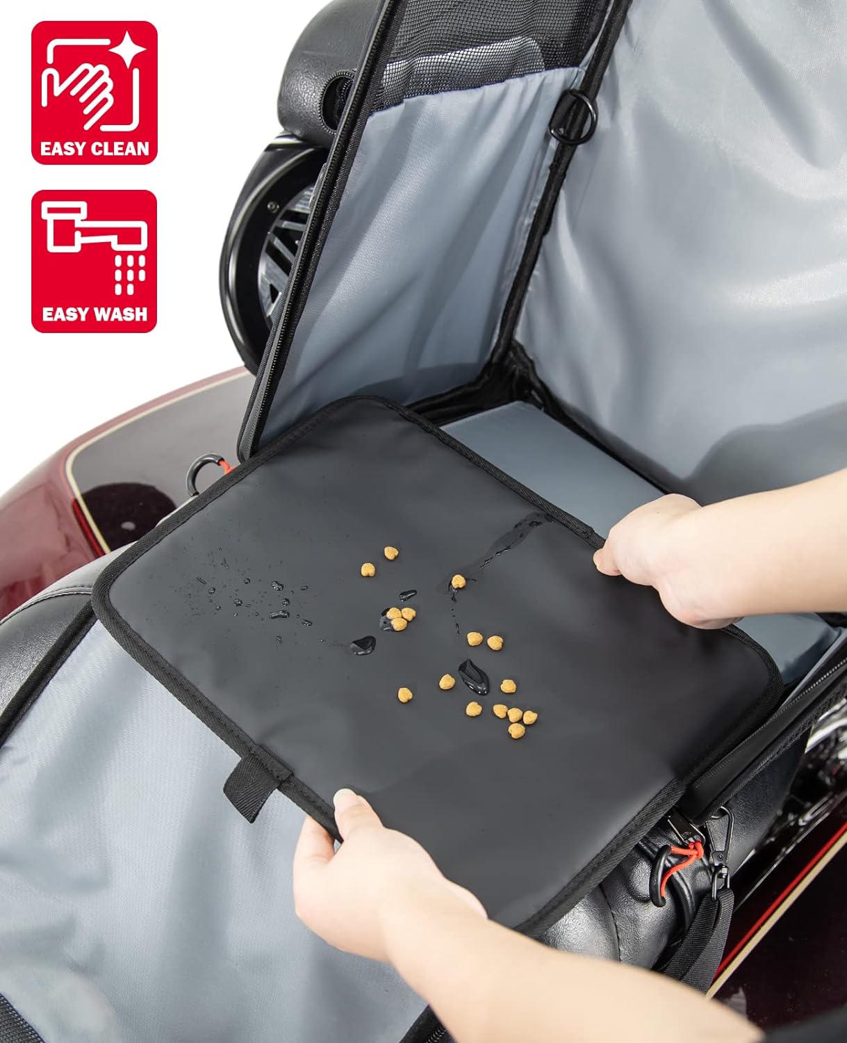 KEMIMOTO Motorcycle Dog Cat Carrier Bags Upgraded for Less Than 20 lbs Pets Carriers Portable Capacity Folding Backpack for Street Glide Road King with Passenger Seat Touring Trike Models Can AMS