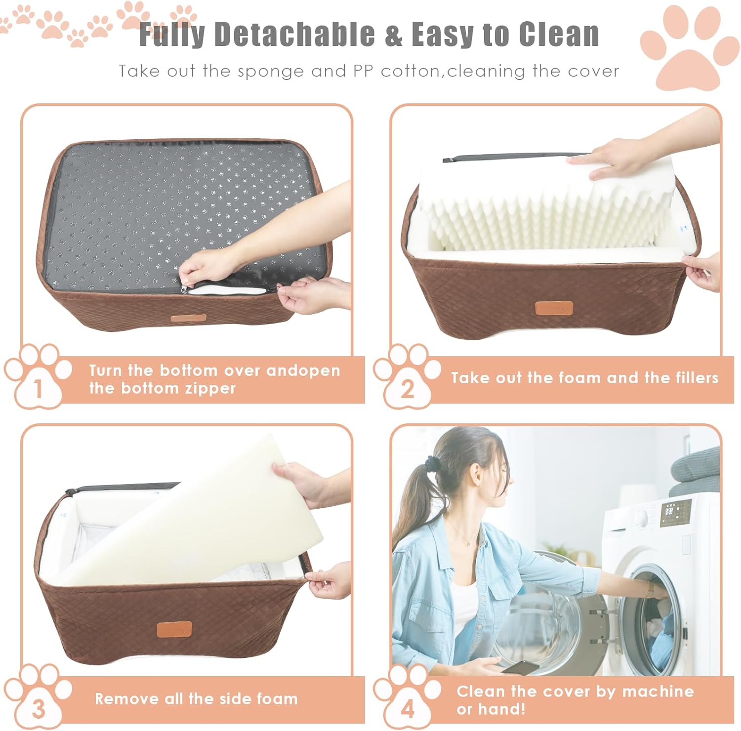 - MACHINE WASHABLE, CARE INSTRUCTION: Our washable Medium car dog bed with removable cover has zipper closure and can be easily cleaned, helping to keep your car clean and fresh. Just get the foam off and it can be machine washed directly. Please note that the inner foam is not washable. After receiving package, leave it for 24h to 48h for rebound.