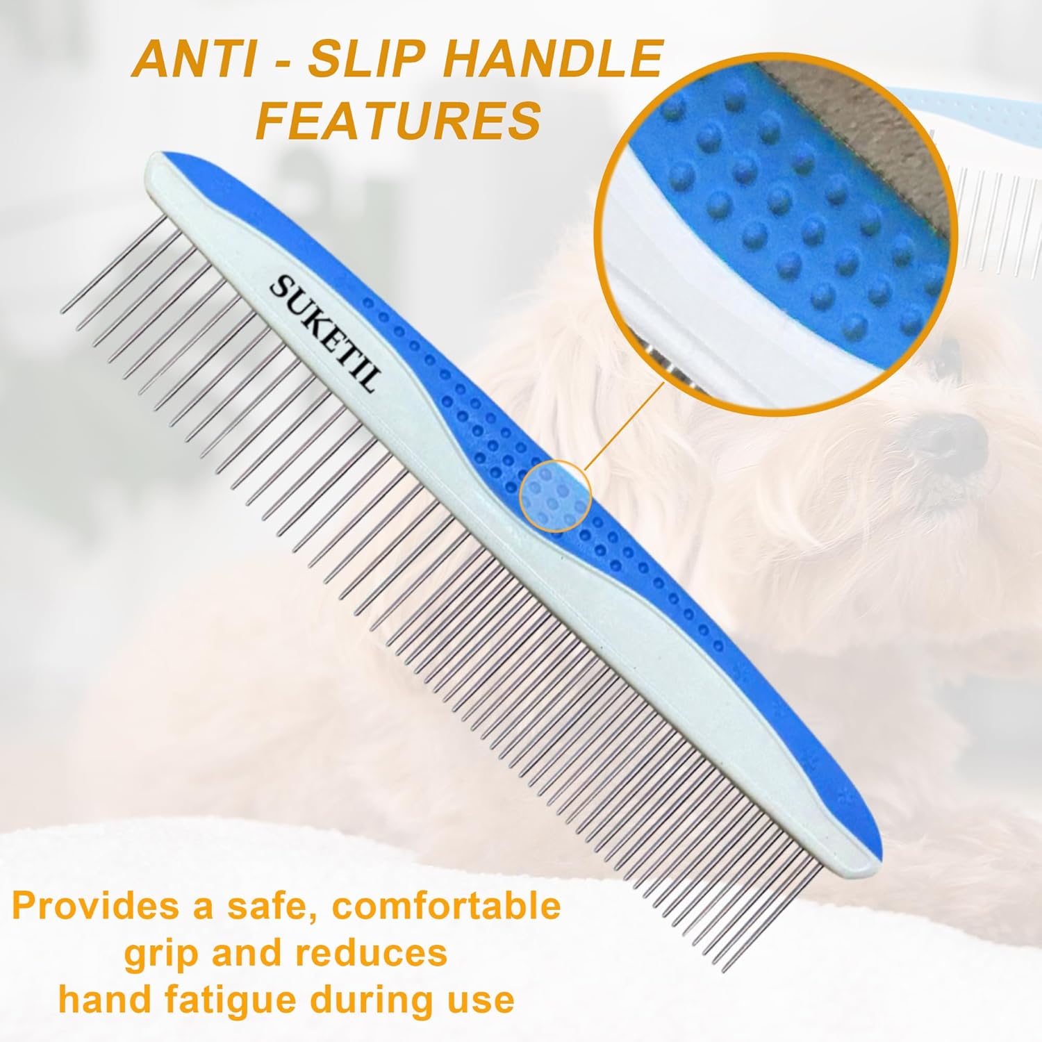 Dog Grooming Comb for Matting, Dog combs for grooming matting, Dematting Comb for Dogs and Cat with Stainless Steel Teeth & Non-Slip Handle (Style 1- Blue)