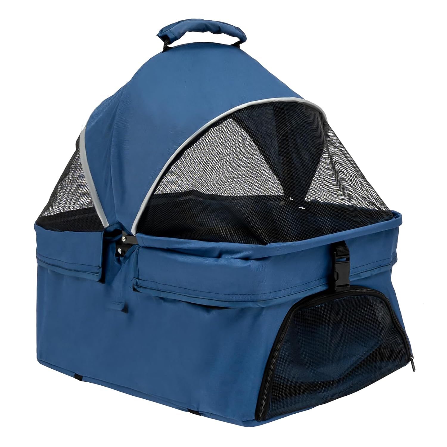 - Thoughtful Design: The carrying basket can be used separately, bringing you more convenience and flexibility. The small front door of the basket can be unzipped to make it convenient to feed your pet. The breathable mesh on the front and back not only allows your pet to breathe fresh air but also allows you to see your pet's real-time status. The spacious basket (22*13.8*9.1in) provides your pet with enough space to move around without being restricted, and it can even accommodate multiple smaller pets.