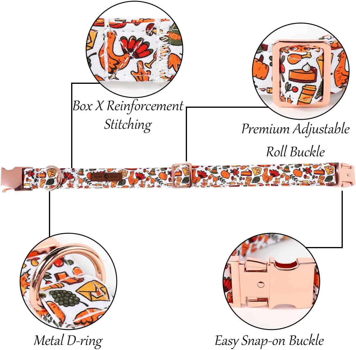 Lionet Paws Thanksgiving Dog Collar, Cute Fall Dog Collar for Medium Dogs, Adjustable Cotton Pet Collars for Small Medium Dogs