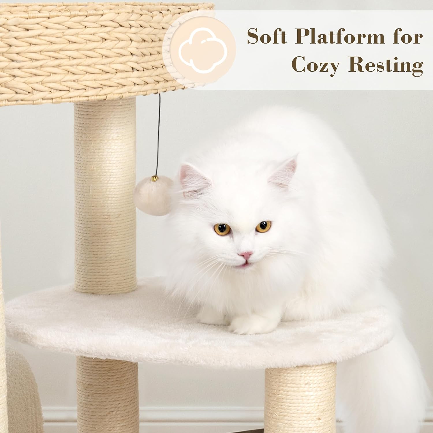 - š High Quality Materials: Hand-woven condo & top perch with cushion is comfortable, breathable and cool. The plush platform provides a comfortable place for cats to relax or play. A great Chrismas gift for your lovely cat.