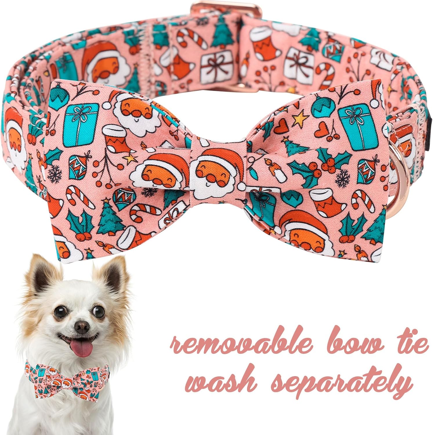 Unique Style Paws Christmas Day Dog Collar with Bow Pink Christmas Man Cotton Puppy Collars for Small Medium Large Dogs