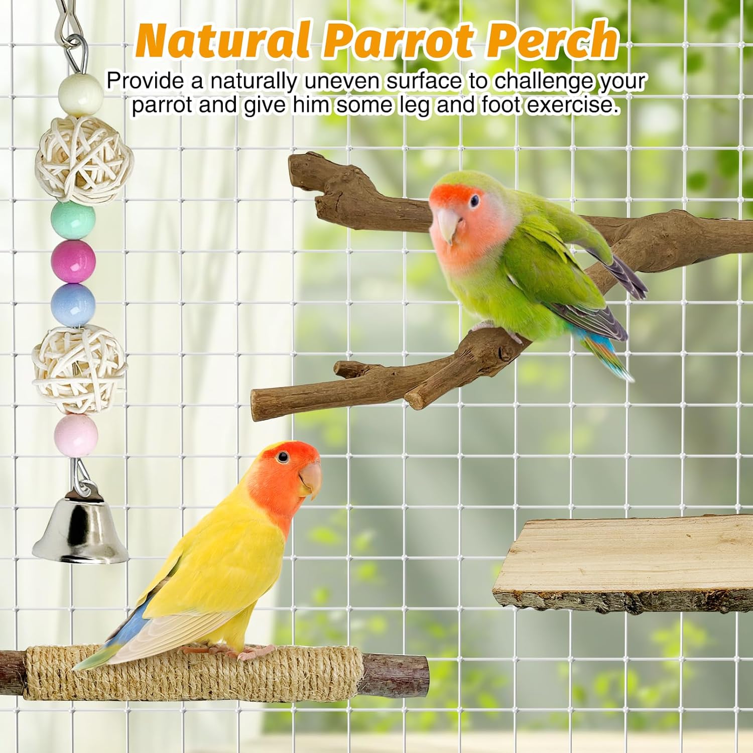 - [Unique Design]: The rough surface of these natural wood perches for birds allows the bird to stand with a steady grip on it, and helps the bird polish its nails to keep its feet healthy, as well as for parrots to chew on