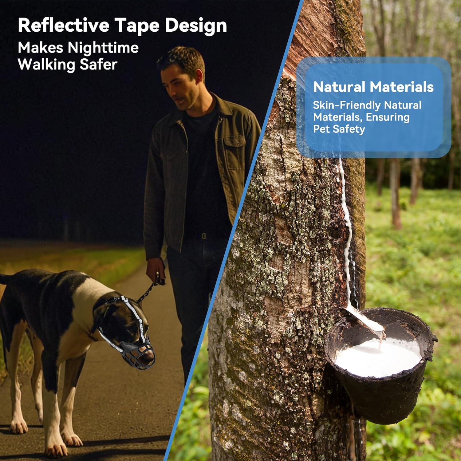 - Eco-Friendly Material for Safety and Durability: Our Dog Muzzle for Large Dogs is Crafted from Non-toxic, Environmentally Friendly TPR Silicone. This Lightweight yet Durable Material Is Odorless, Soft to the Touch, And Sturdy Enough to Resist Deformation, Ensuring Long-Lasting Use While Prioritizing Your Pet’s Safety