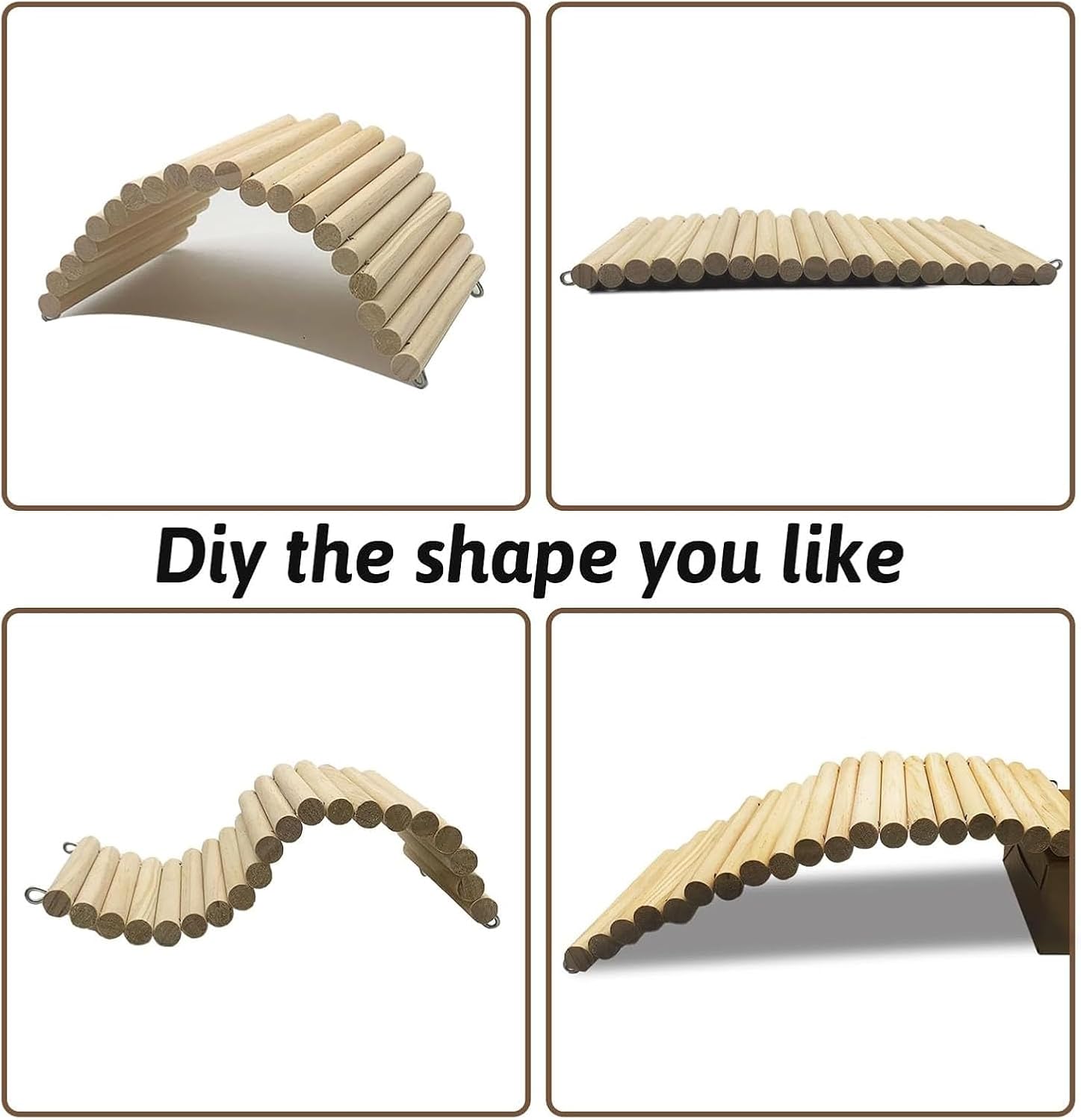 - Natural Habitat Ramp: Cute bridge is made from wood sticks, with no additive, chewing and playing, can be used for a long time. It held together with two flexible metal wires without any treatment so that the pet has enough security in it