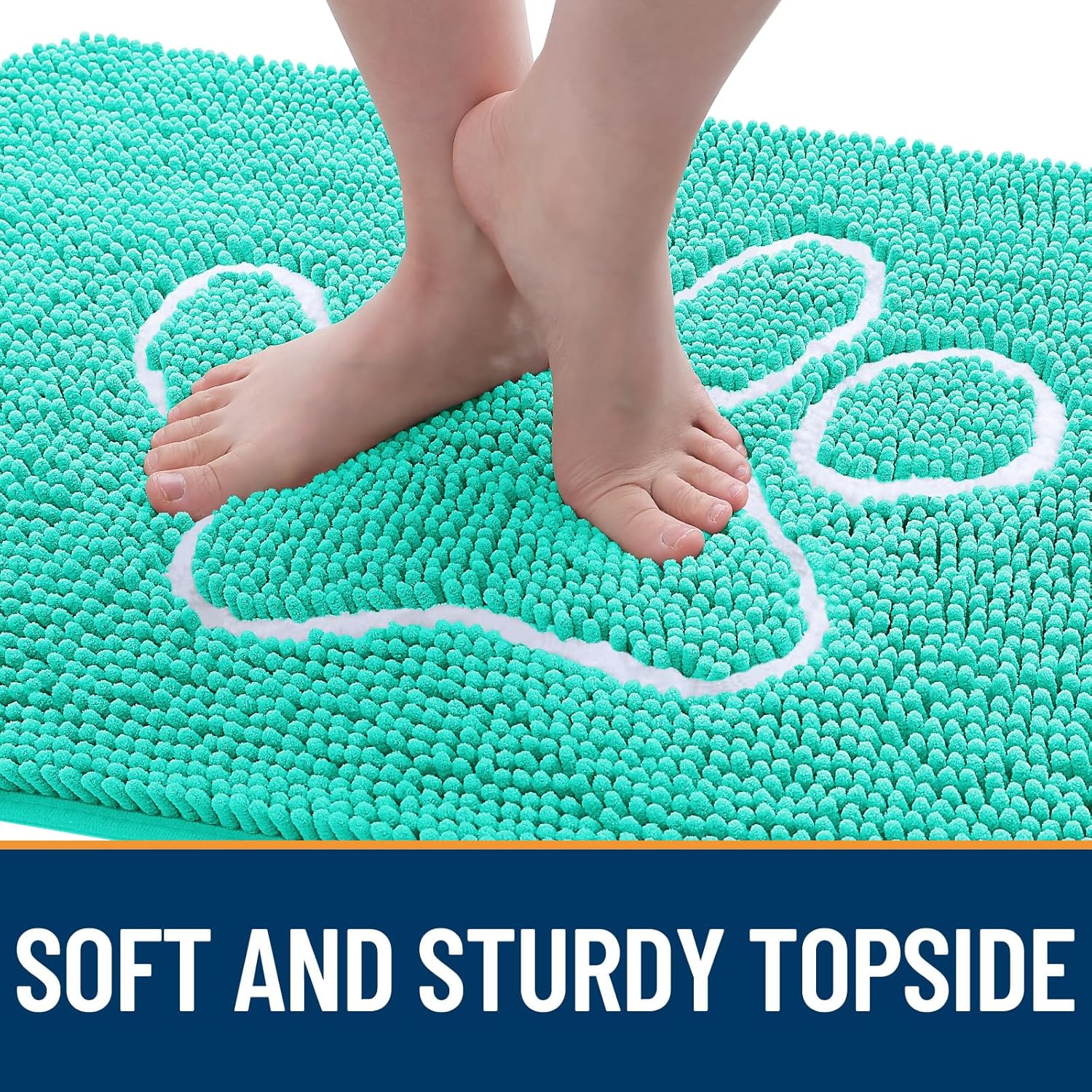 OLANLY Door Mat for Muddy Dog Paws 36x24, Ultra Absorbent Chenille Mud Doormat with Paw Print Design, Non-Slip Washable Doormat for Indoor Entryway, Quick-Dry Pet Bed Mats for Dirty Dogs, Teal