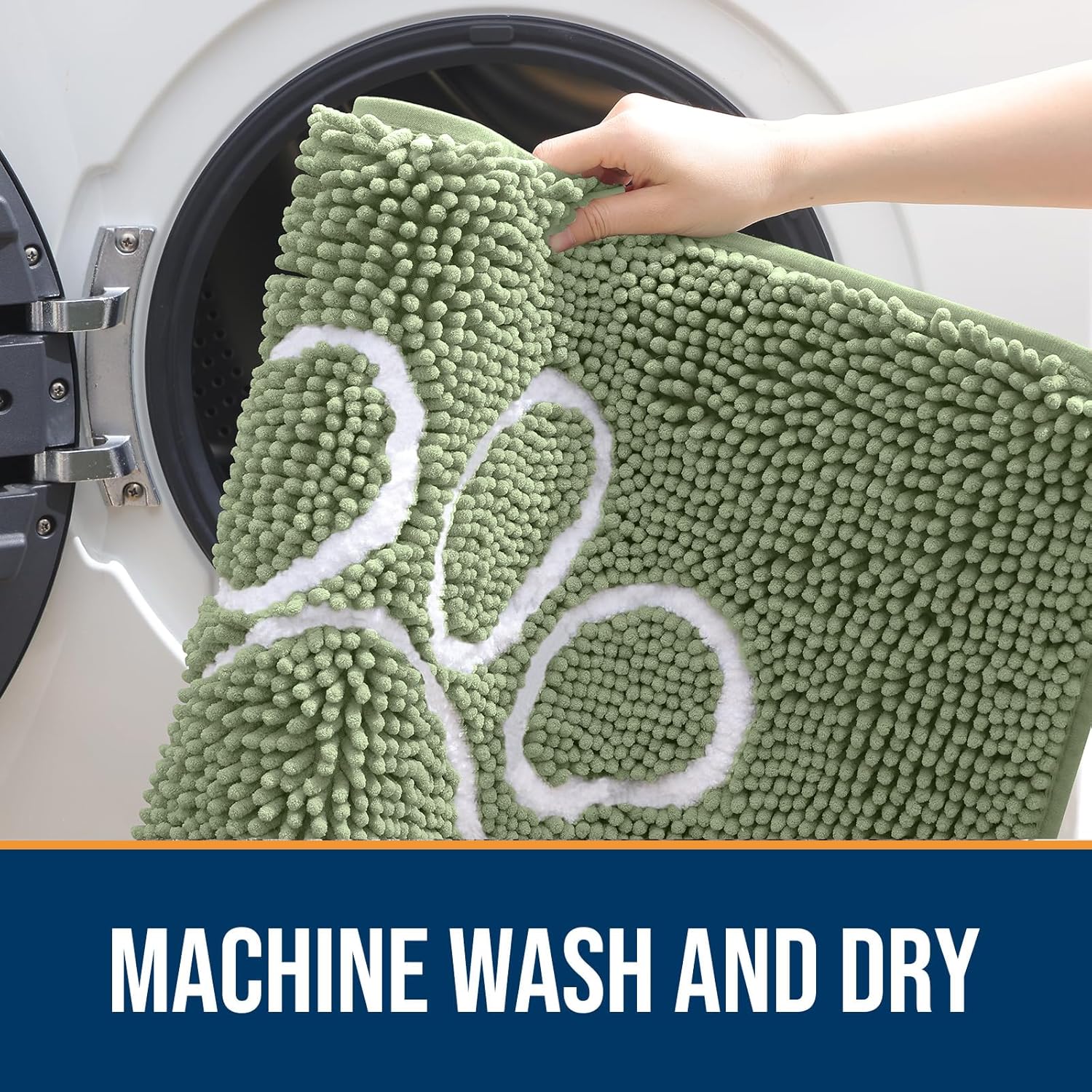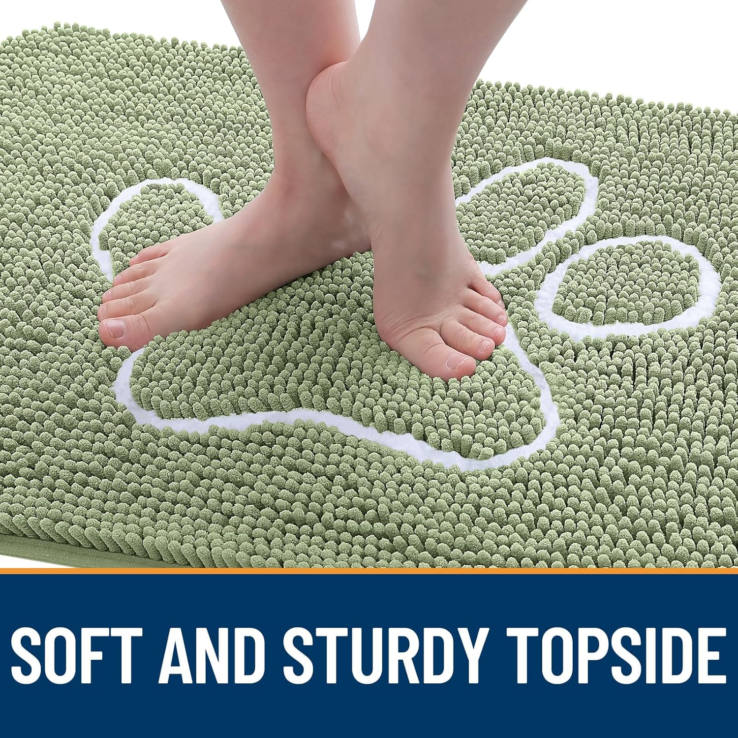 OLANLY Door Mat for Muddy Dog Paws 70x46, Ultra Absorbent Chenille Mud Doormat with Paw Print Design, Non-Slip Washable Doormat for Indoor Entryway, Quick-Dry Pet Bed Mats for Dirty Dogs, Sage Green