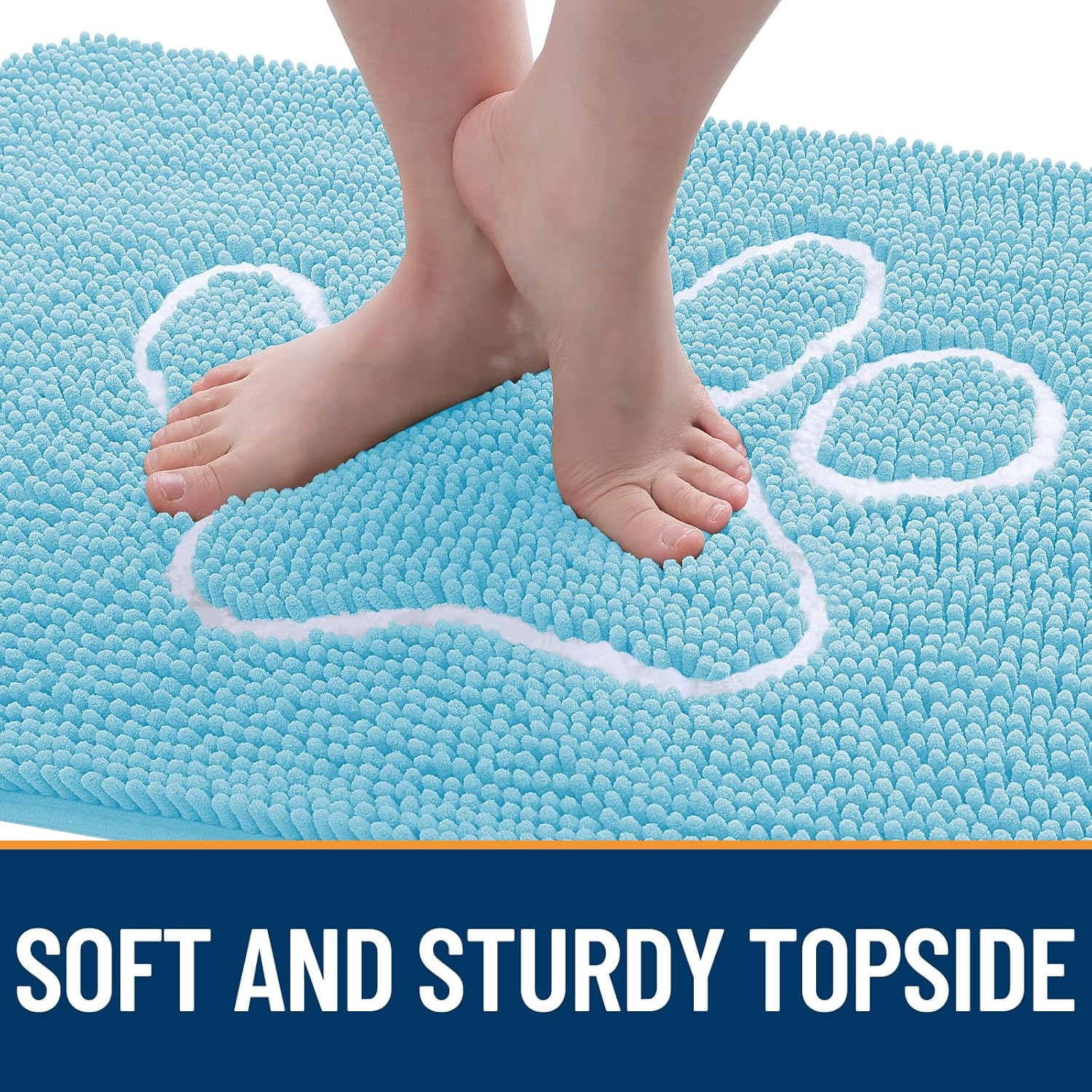 OLANLY Door Mat for Muddy Dog Paws 59x35, Ultra Absorbent Chenille Mud Doormat with Paw Print Design, Non-Slip Washable Doormat for Indoor Entryway, Quick-Dry Pet Bed Mats for Dirty Dogs, Blue
