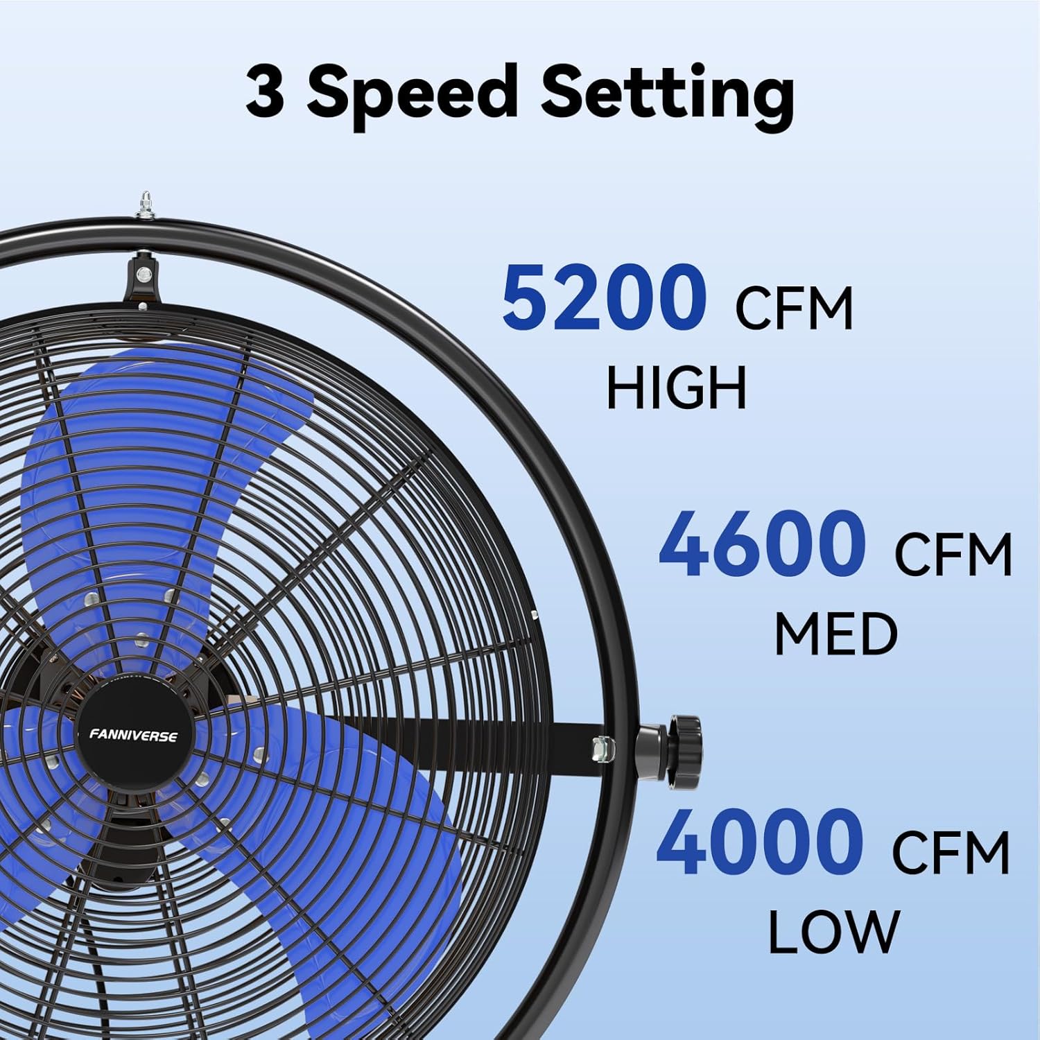 - Powerful Airflow & Wide Coverage: Fanniverse 20" wall-mounted oscillating fan delivers up to 5200 CFM of airflow with a reach of 40 ft. Features 80° oscillation and 300° vertical tilt for wide-area coverage—ideal for indoors, garages, patios, workshops, and warehouses.