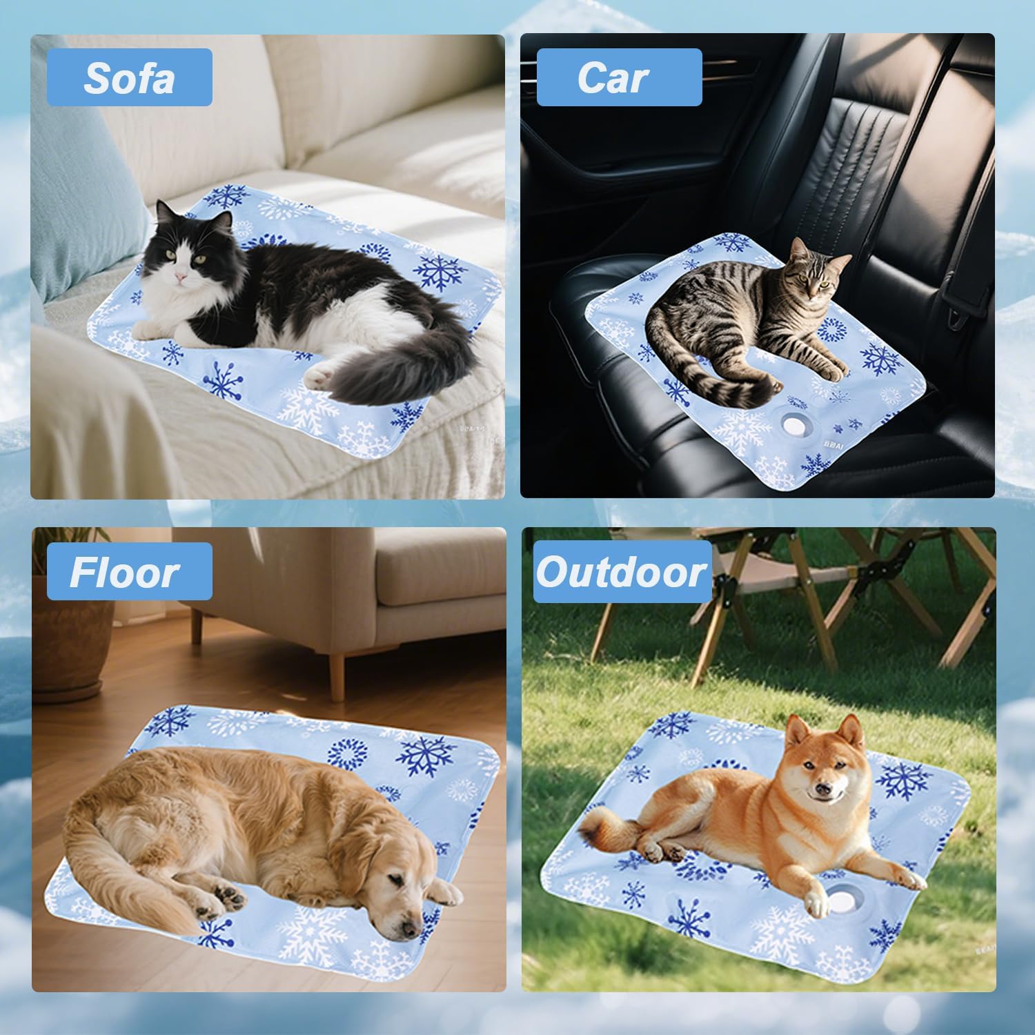 - SUMMER PET MAT: Simply fill the dog cooling mat, our Cooling Mat for Dogs provides immediate and long-lasting relief from heat for pets of all sizes. Simply place it in a shaded spot, and it cools down rapidly without electricity, perfect for keeping your furry friends comfortable during scorching summer days indoors or outdoors.