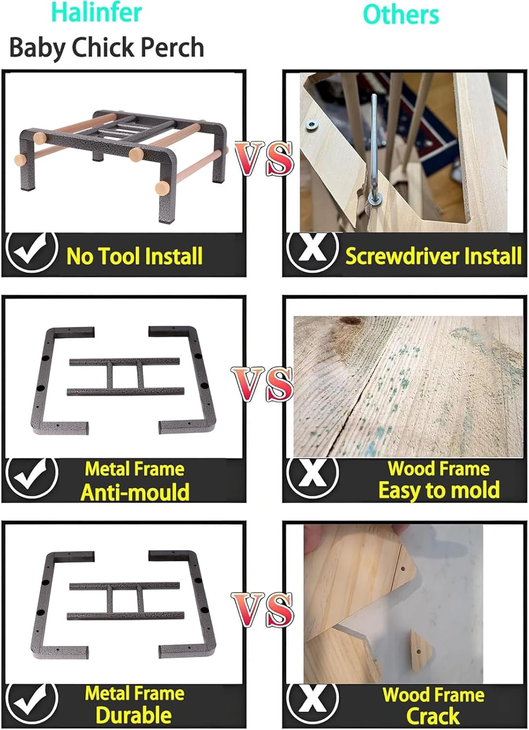 - MATERIAL QUALITY: Metal frames are more stable and last for long to sit on the table. Smooth-finished wood construction ensures splinter-free surface for delicate bird's feet, the metal ladder provides better resting away from the ground.