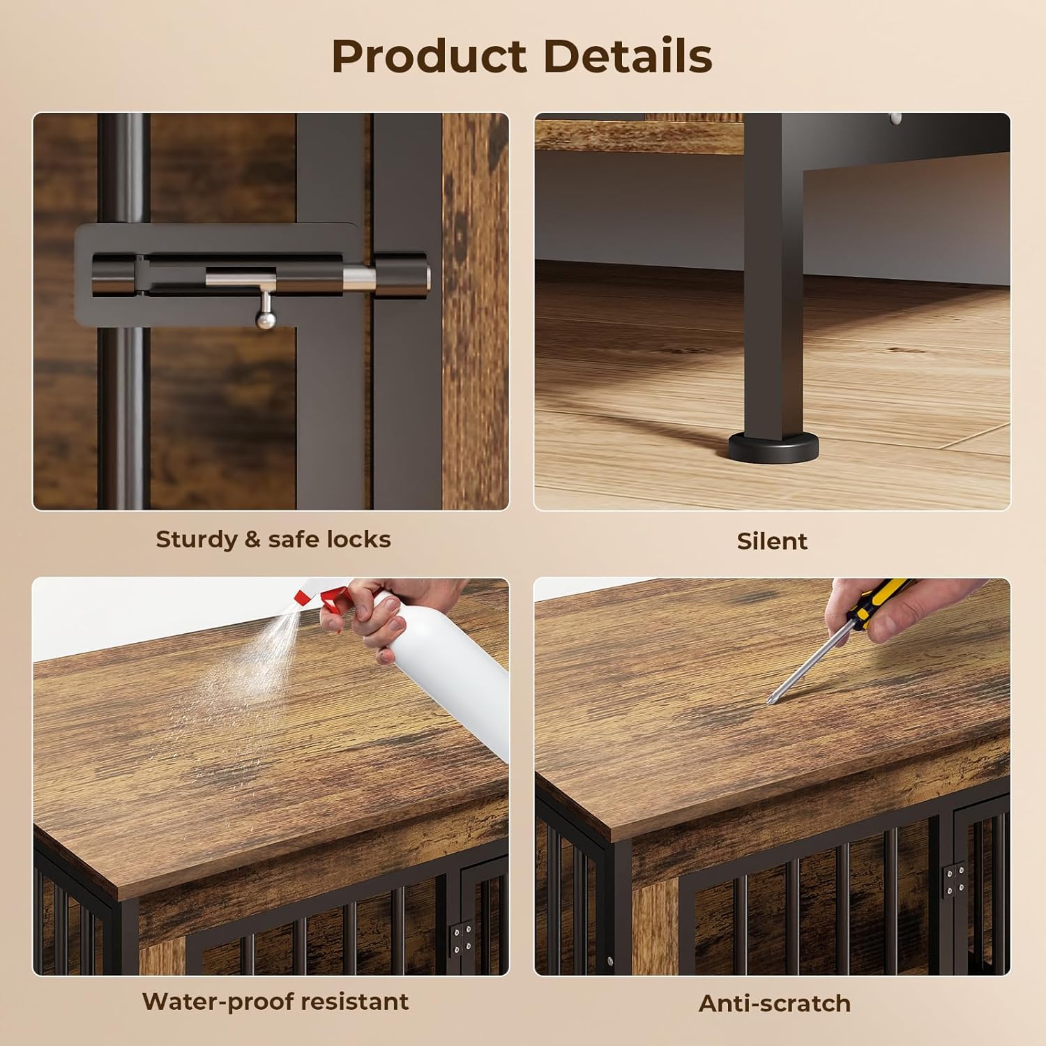- Heavy-Duty and Chew-Resistant: Constructed with thick 0.5" engineered wood panels and sturdy steel bars, this durable dog crate stands up to active pets. Reinforced bottom support bars and premium materials provide excellent stability, load-bearing capacity, and bite resistance