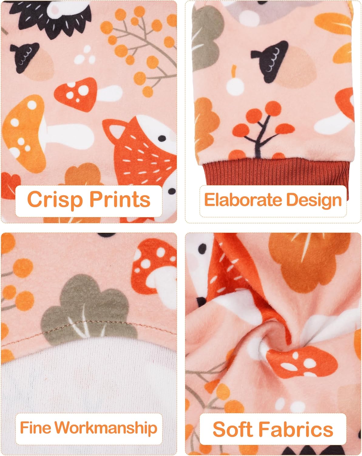 - Dog PJs for Fall and Thanksgiving: This fall dog clothes set contains 4 pieces cute dog fleece pajamas with 2pcs fall and 2pcs Thanksgiving designs with Hedgehog, Maple Leaf, Pumpkin, Turkey, Apple Mushroom, Fox, etc patterns. There are 4 colors to choose: pink /yellow/brown/salmon, suitable for small medium doggies,male and female. It is adorable and eye-catching when your puppies wear it. They are good choice for the multi pet families