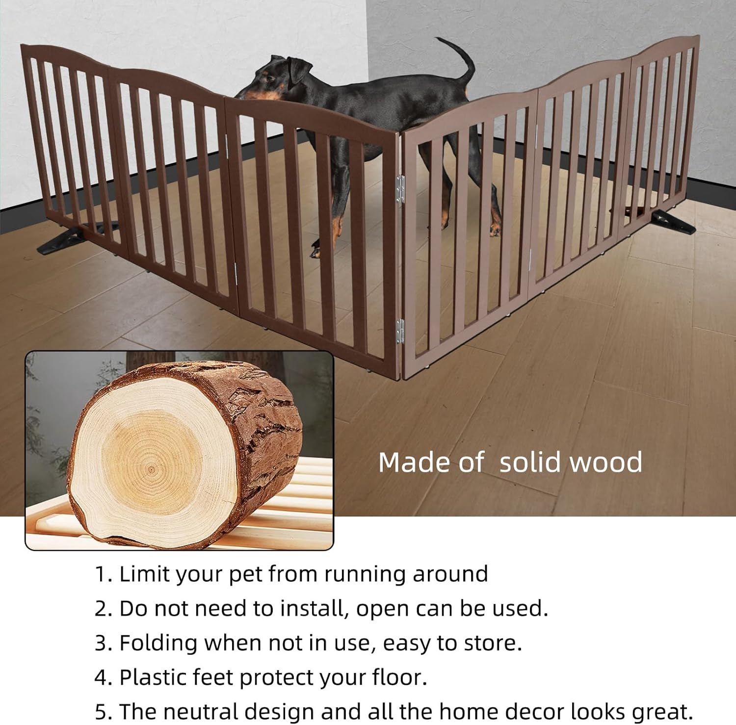 ZJSF Foldable Freestanding Indoor Dog Gate for House Wood Long Pet Gates Dog Fence for Stairs Puppy Gates for Hallways, Puppy Gate,Support Feet Included, Brown, 32 "Height-6 Panels