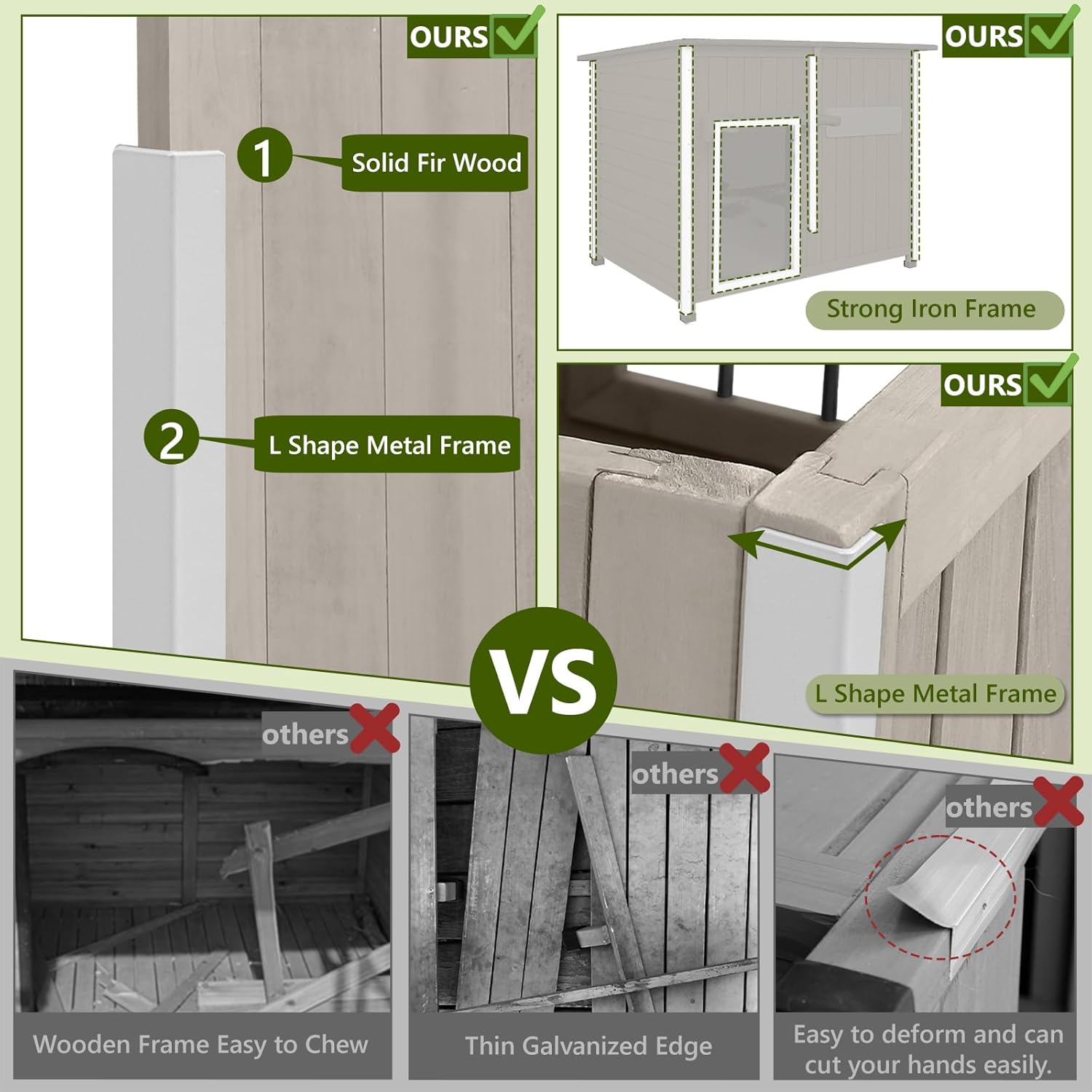 - 【SPACIOUS INTERIOR & PERSONALIZED NAMEPLATE】With ample space for pets to stand, turn, and relax, this dog house offers comfort without compromise. The slanted roof channels rainwater to the back, preventing leaks, while the removable nameplate lets you add a personal touch, creating a cozy, one-of-a-kind home for your furry friend.