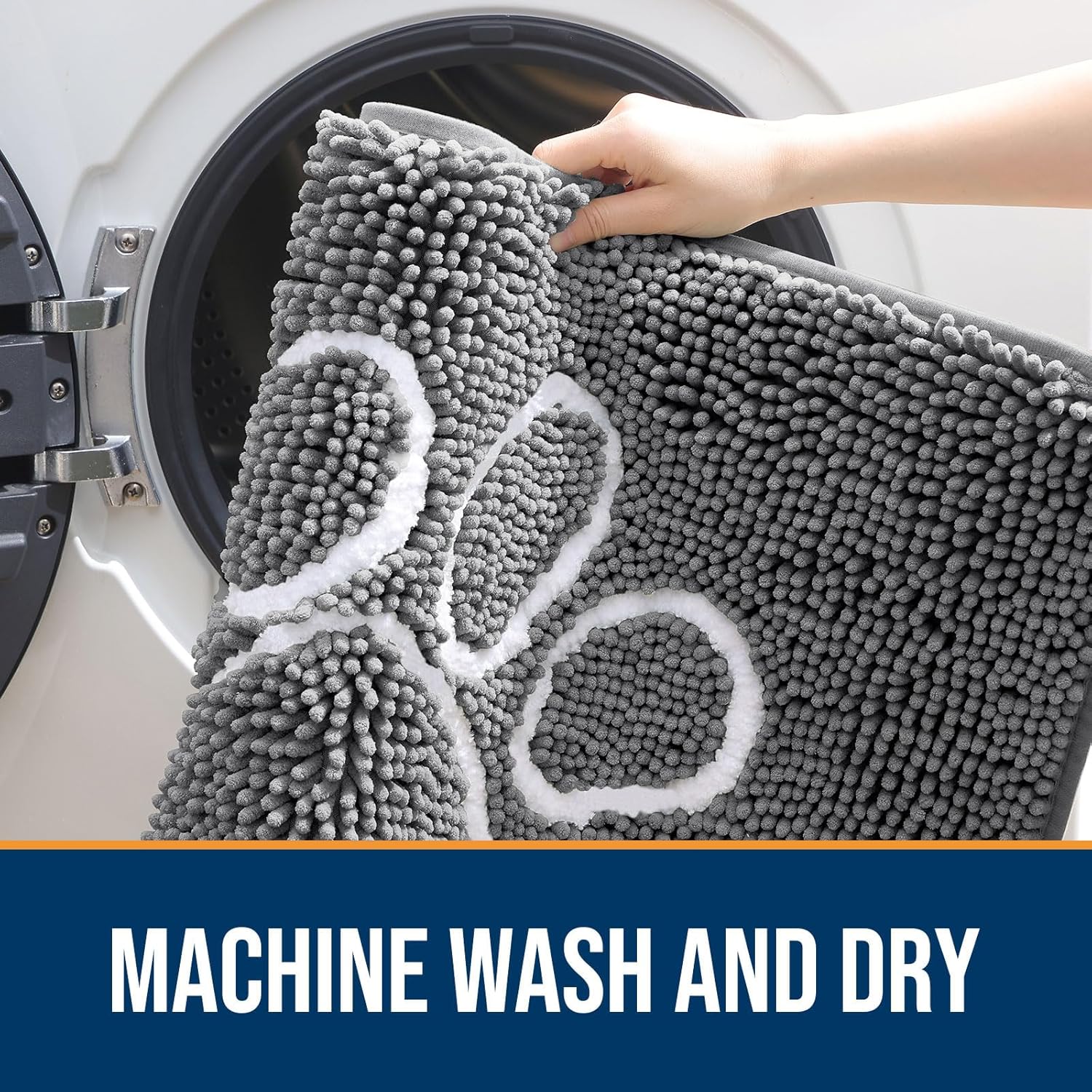 OLANLY Door Mat for Muddy Dog Paws 48x30, Absorbent Chenille Mud Doormat with Paw Print Design, Non-Slip Washable Doormat for Indoor Entryway, Quick-Dry Pet Bed Mats for Dirty Dogs, Grey and White