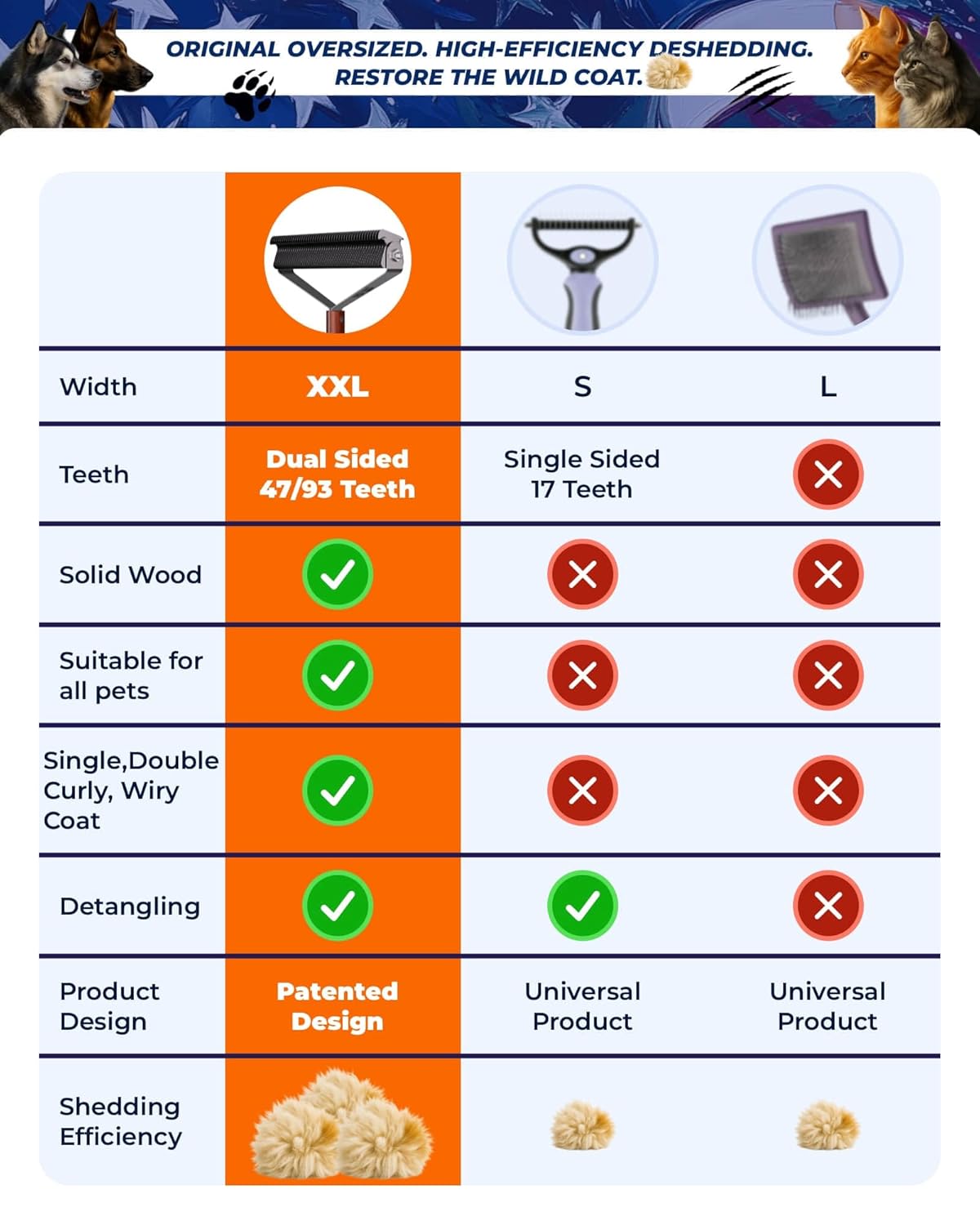 - Color : Max Deshedder - 47/93 Teeth - African Padauk(Flagship)